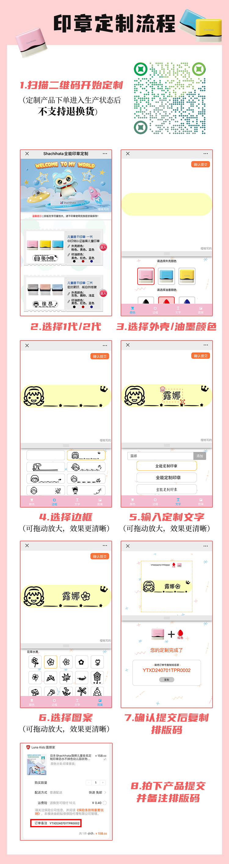 【备注定制码】日本Shachihata旗牌儿童姓名定制印章 防水不掉色幼儿园衣物名字