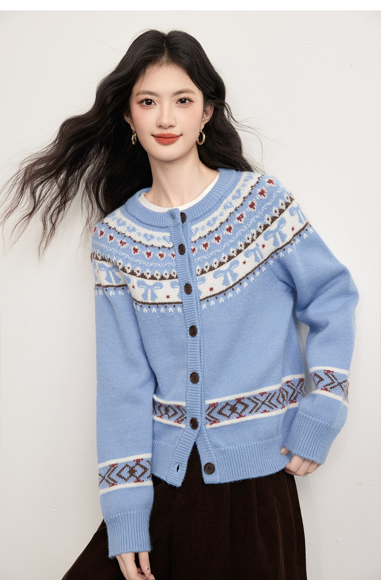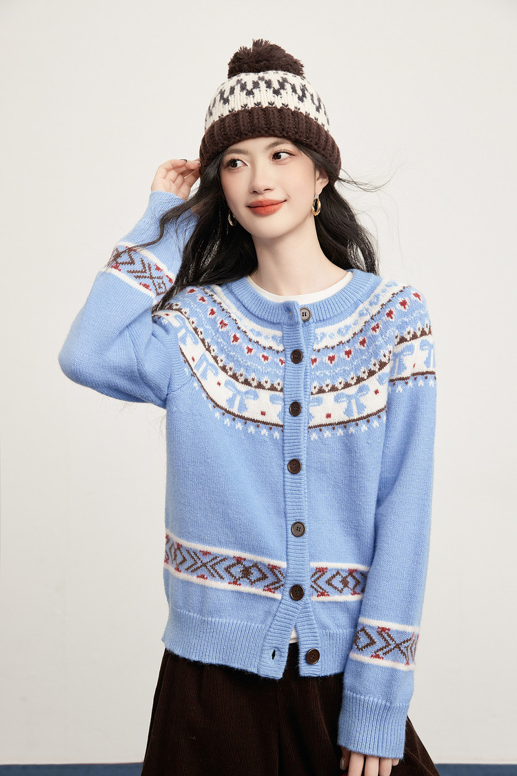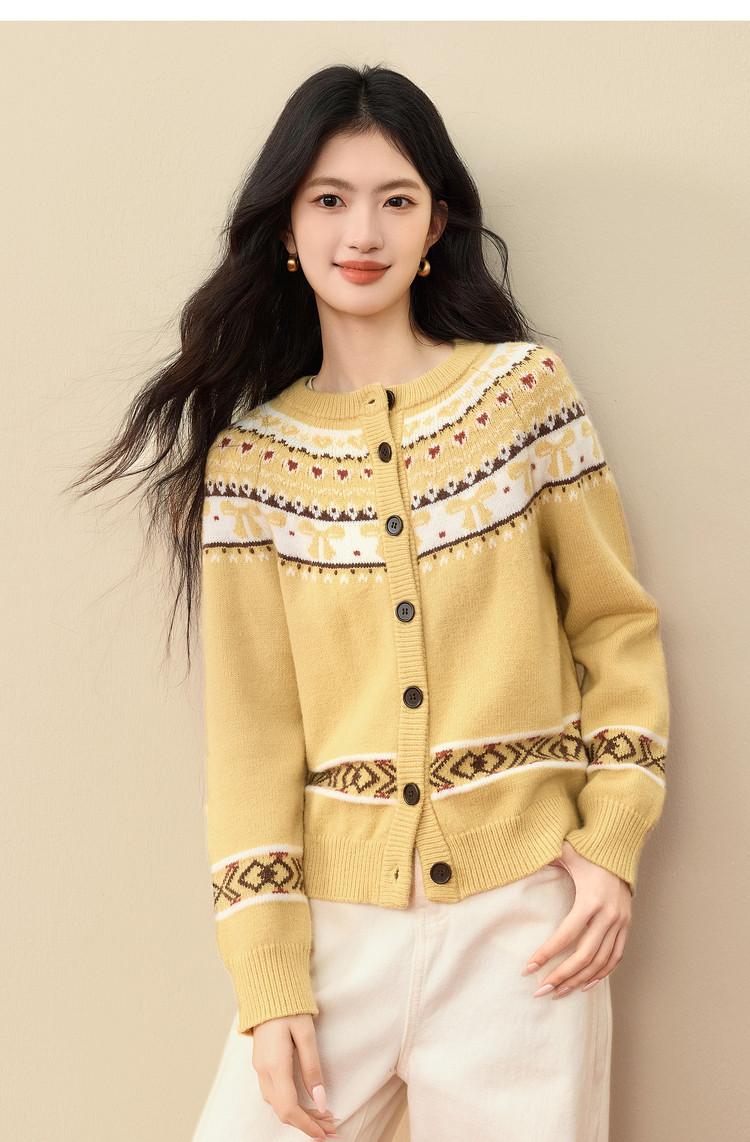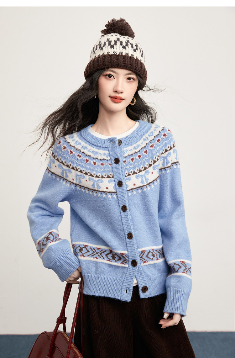 【1/21新品】熙世界【新年费尔岛毛衫】北欧风开衫毛衣女秋冬复古提花针织外套