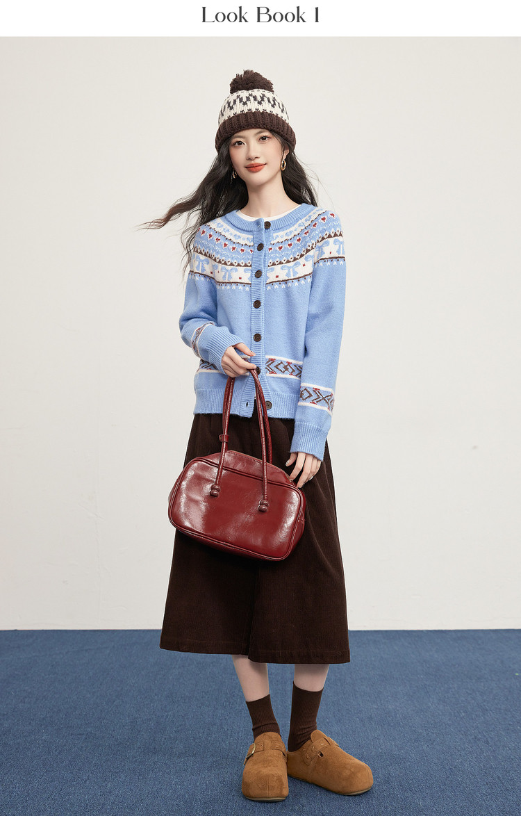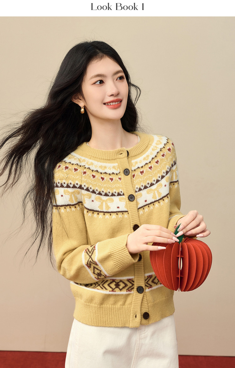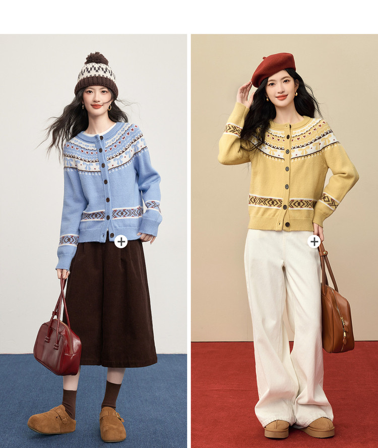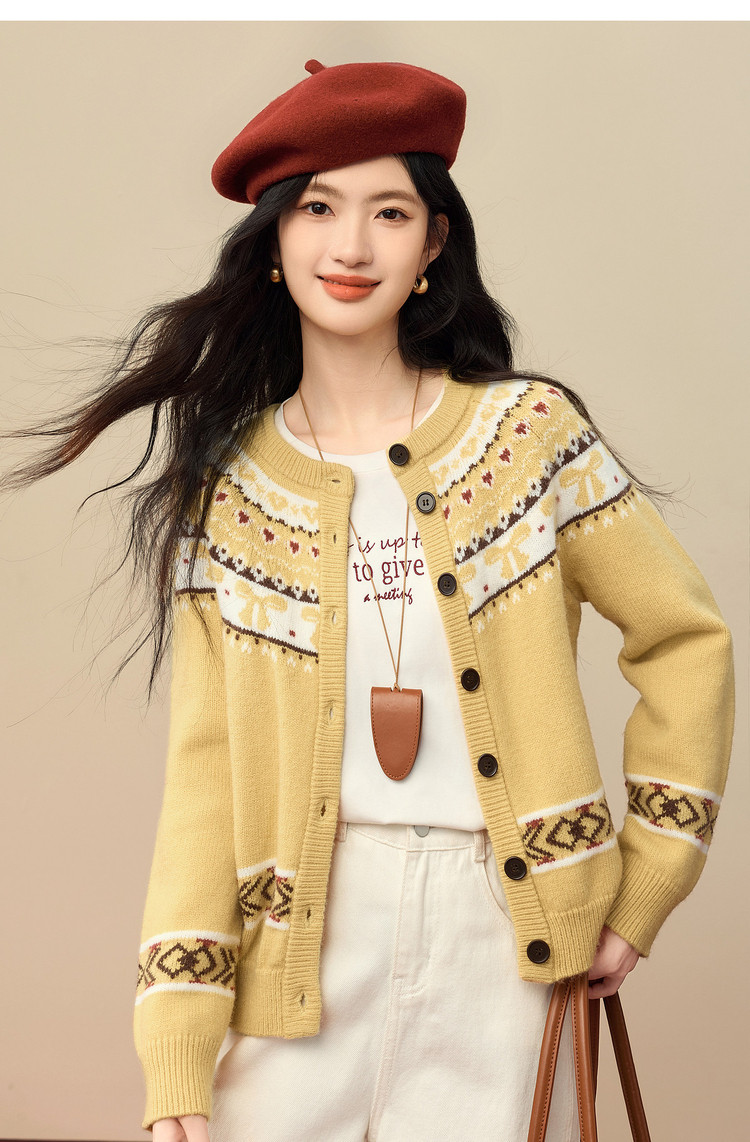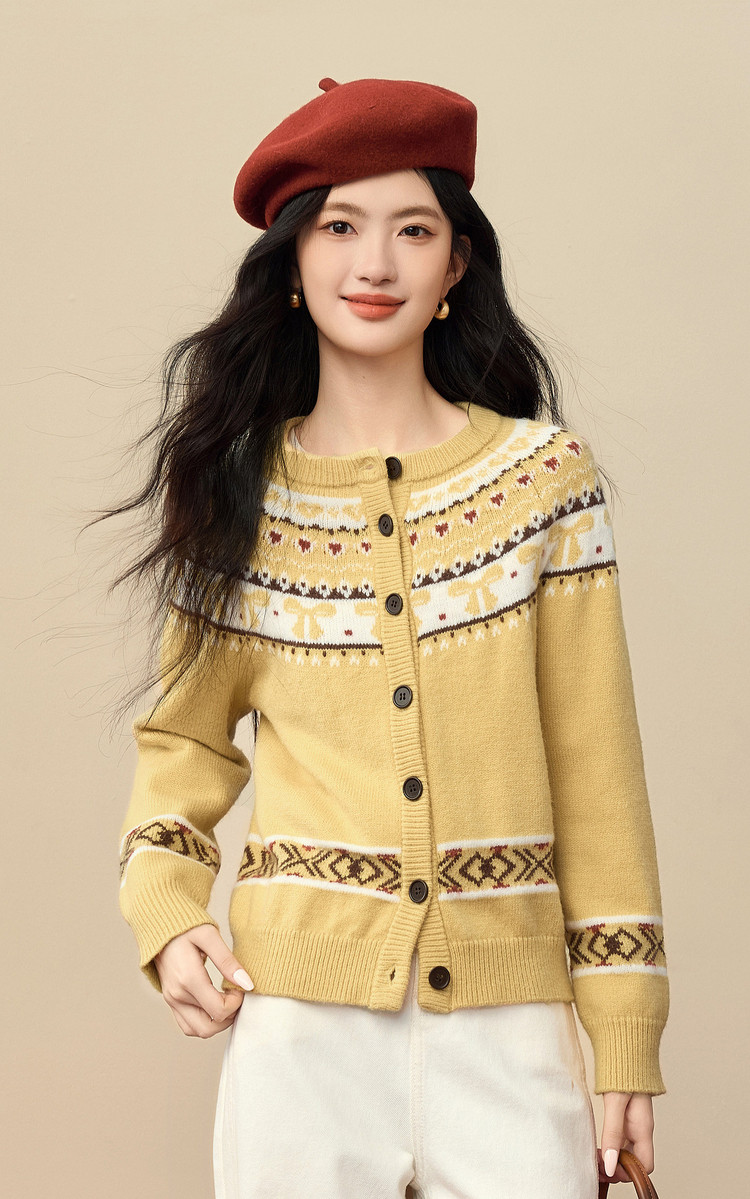 【1/21新品】熙世界【新年费尔岛毛衫】北欧风开衫毛衣女秋冬复古提花针织外套