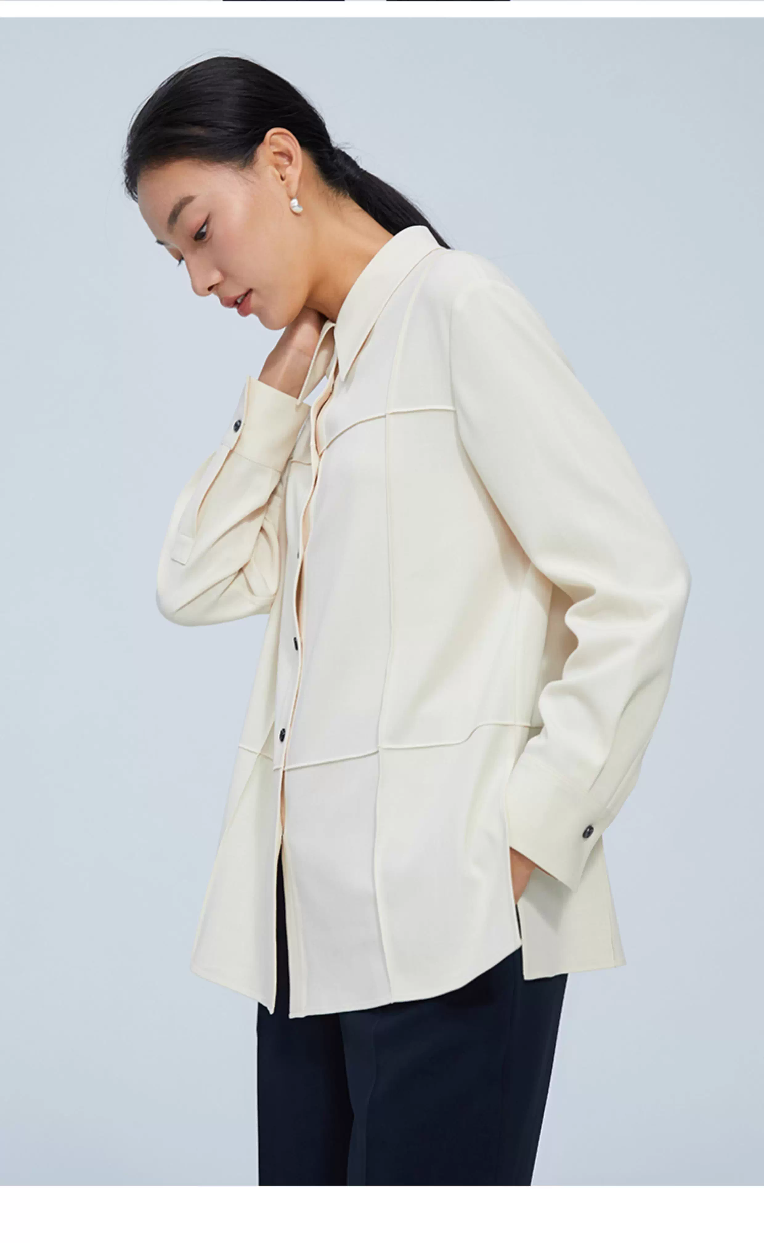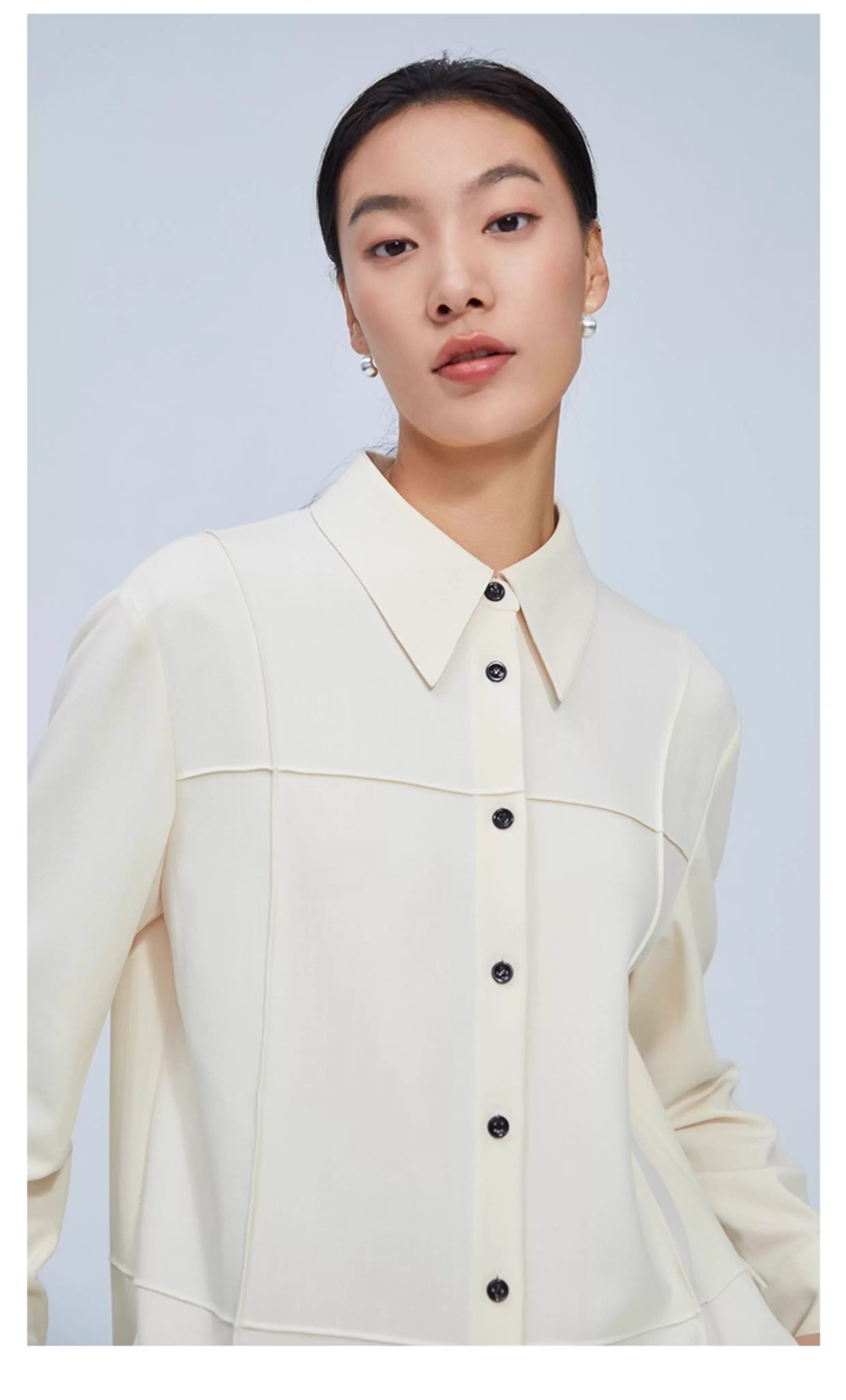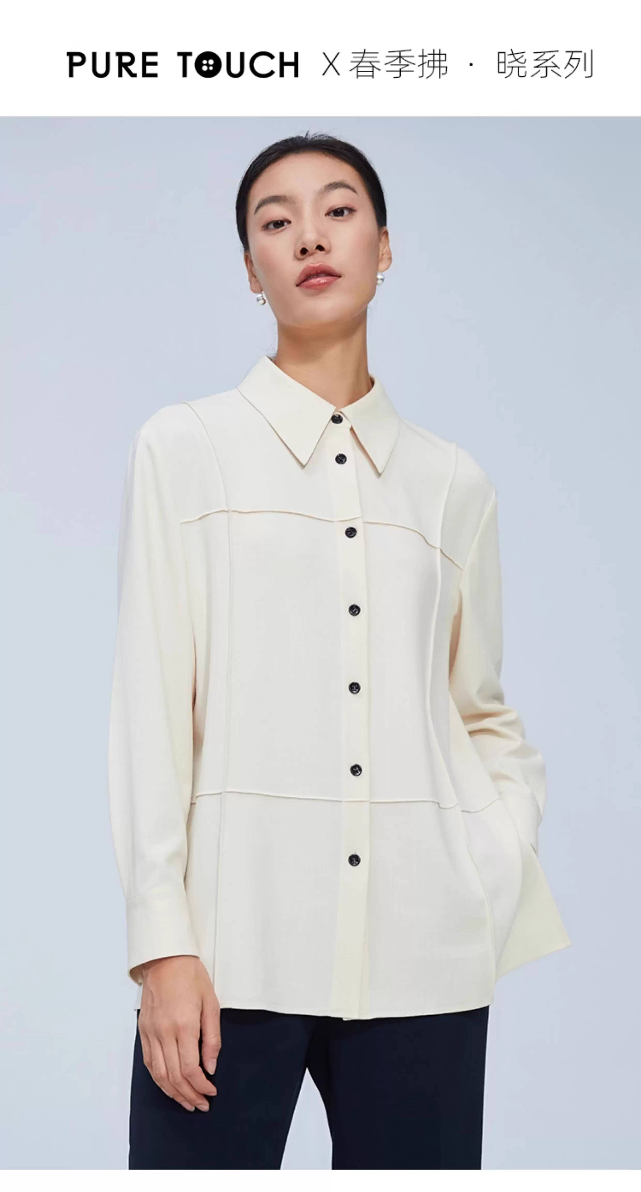 pure touch尖领廓形女士衬衫高级小众设计感宽松百搭长袖春季衬衣
