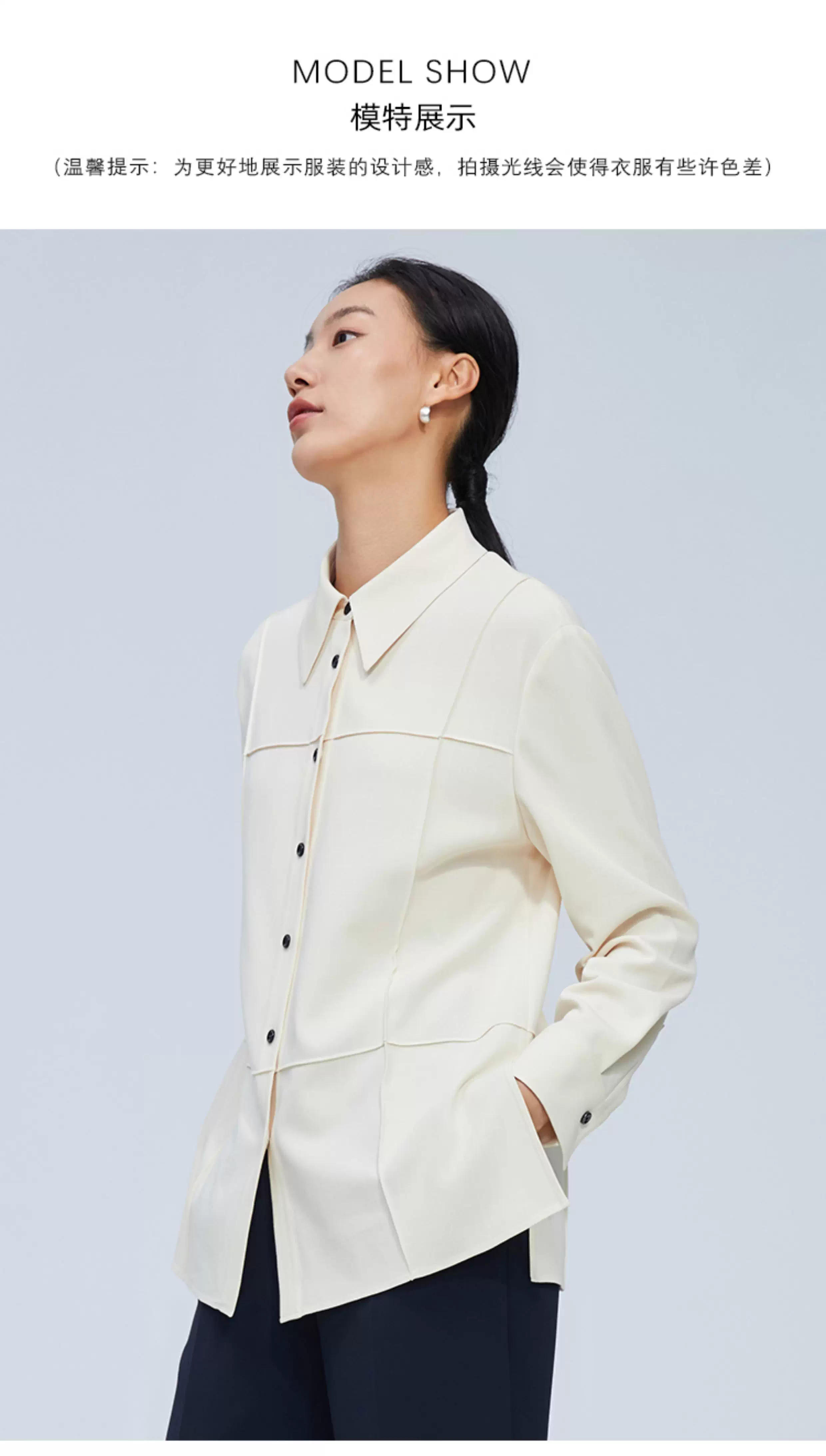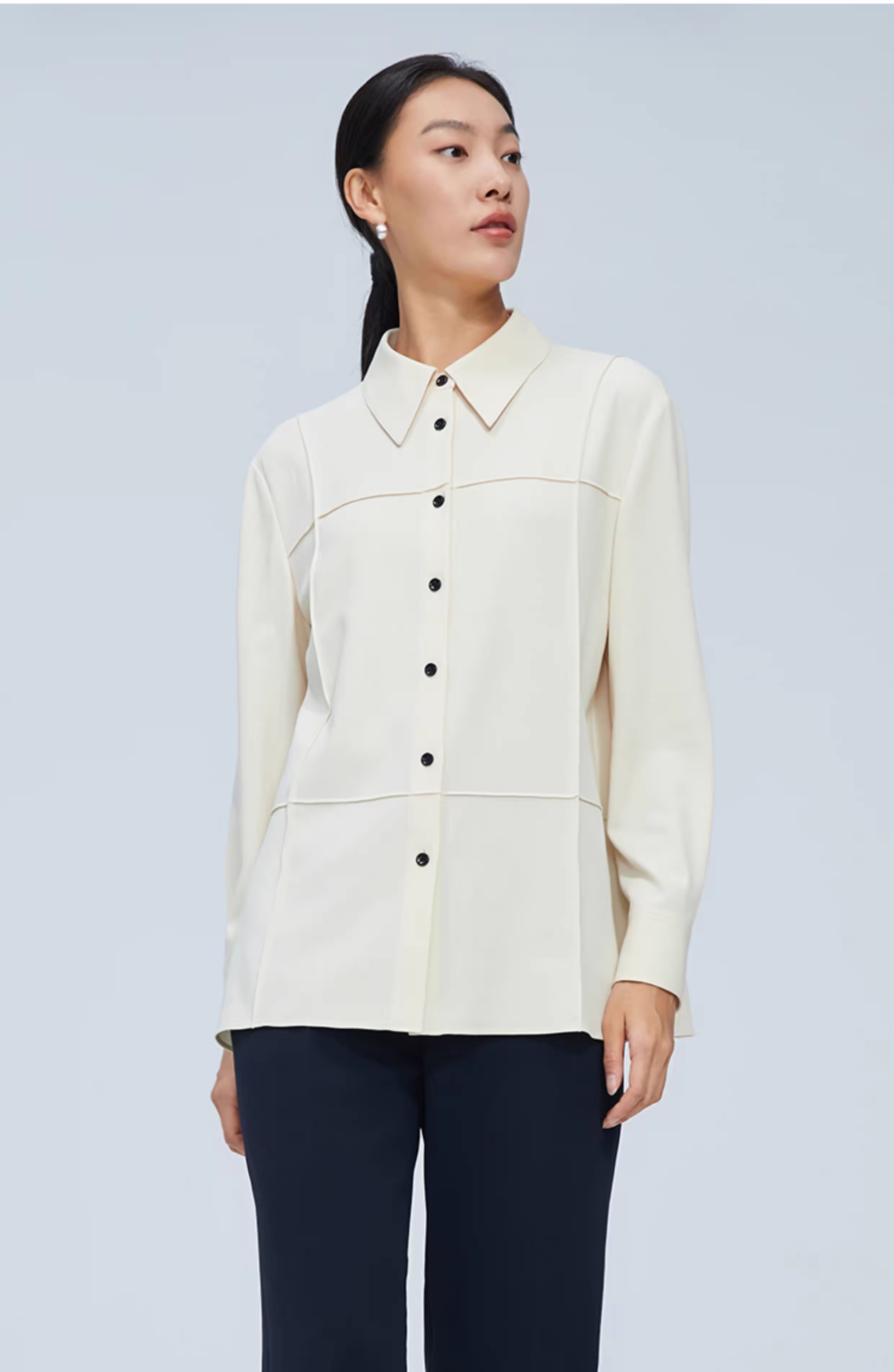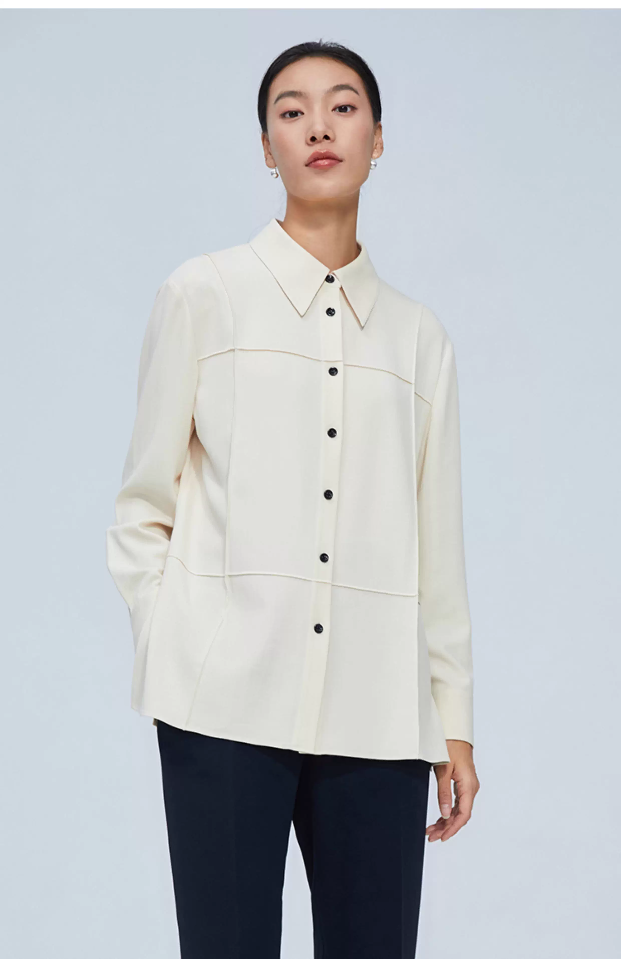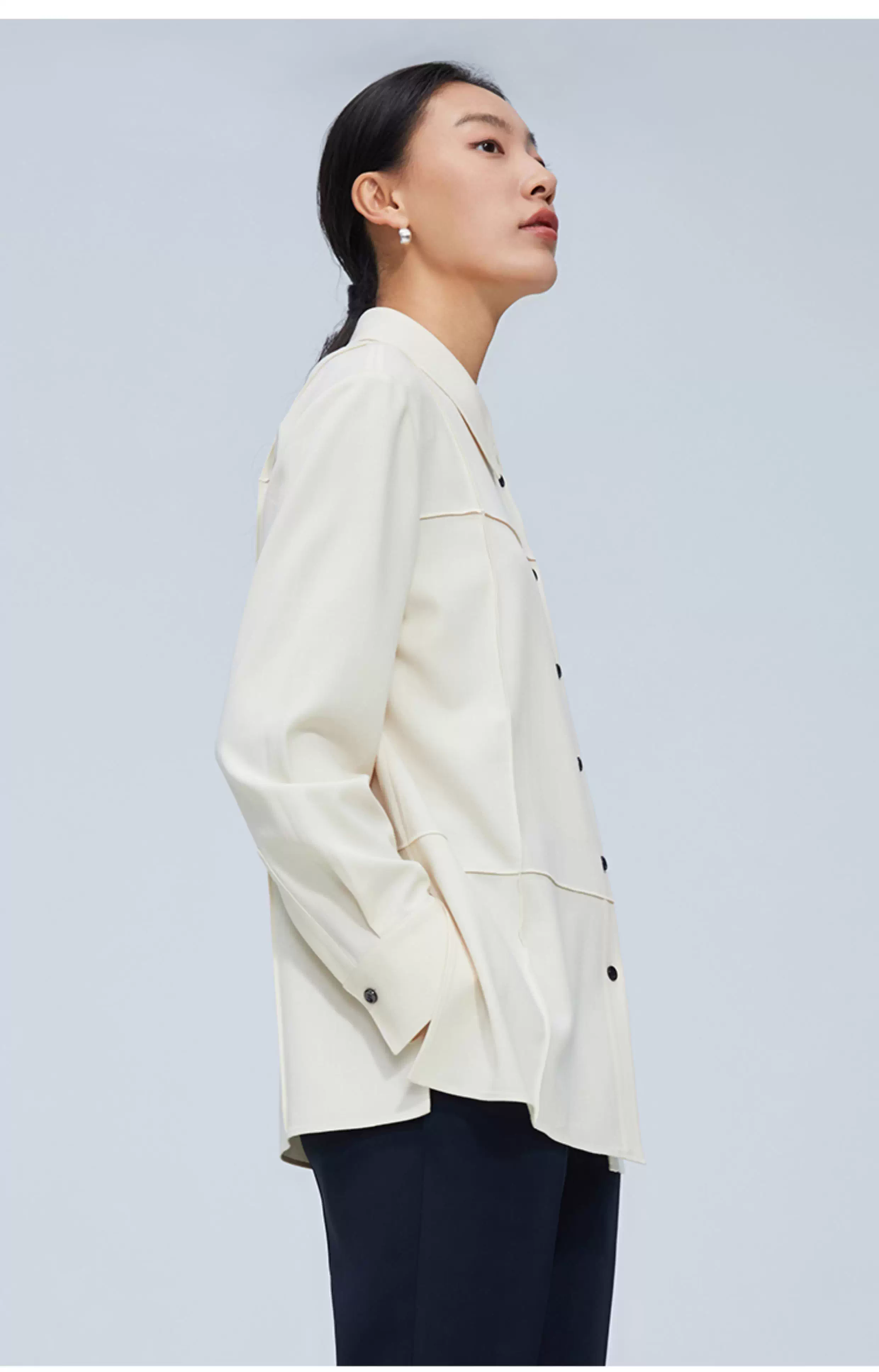 pure touch尖领廓形女士衬衫高级小众设计感宽松百搭长袖春季衬衣