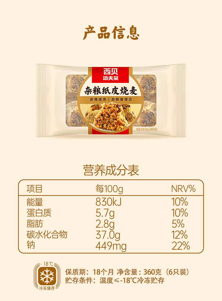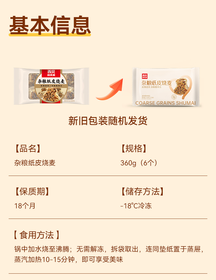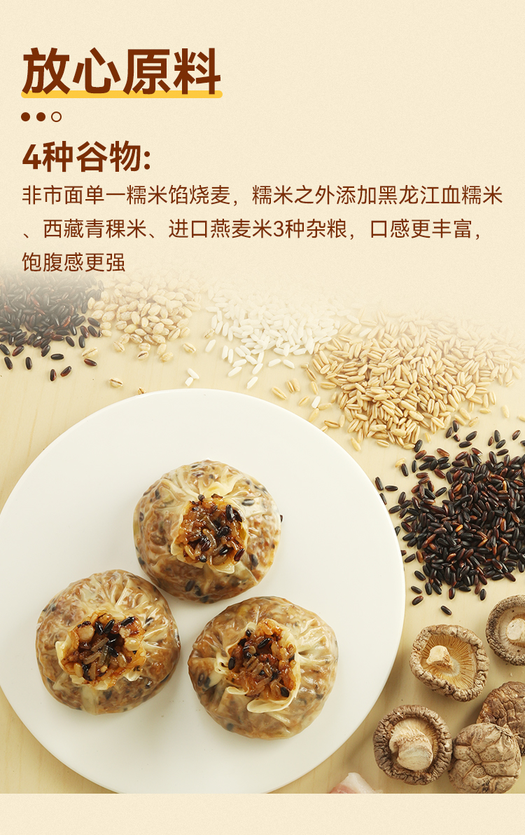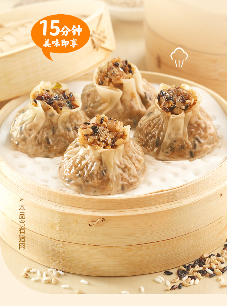 杂粮纸皮烧麦240g/袋(4个装)/360g/袋(6个装) 四种谷物薄皮透亮加热即烹【社群】订单满99元包邮