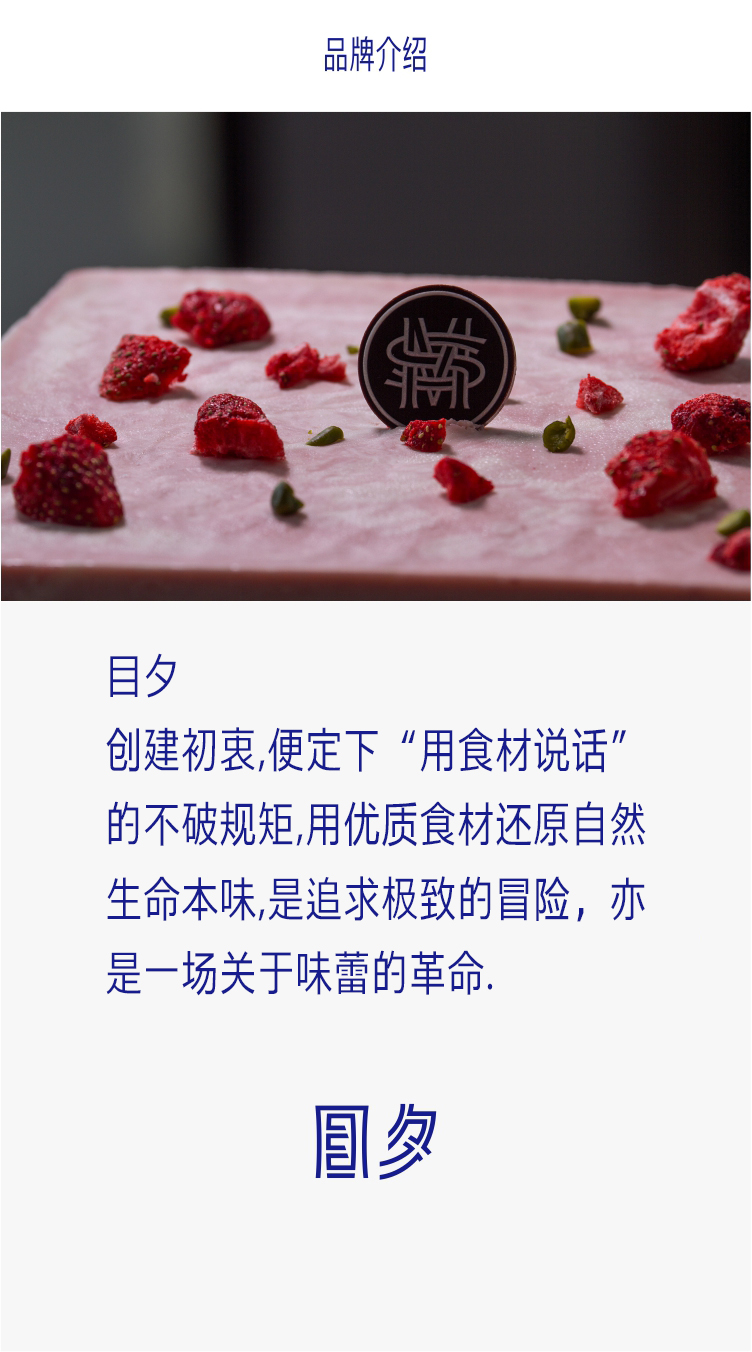 - 目夕,创建初衷, 便定下“用食材说话”的不破规矩, 用优质食材还原自然生命本味, 是追求极致的冒险,亦是一场关于味蕾的革命.