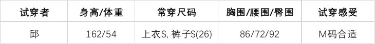 Try size/试穿尺寸: