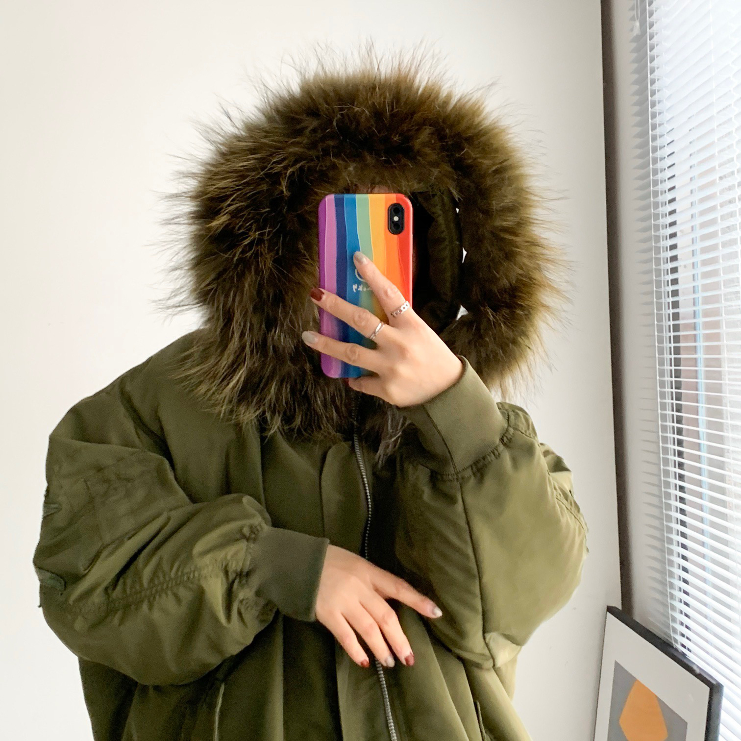 可验货!!这大貉子毛领保证是你没见过的❌我用手机对比下你就知道有多么大了!!光是这条毛领单独定制就要将近200块钱‼️