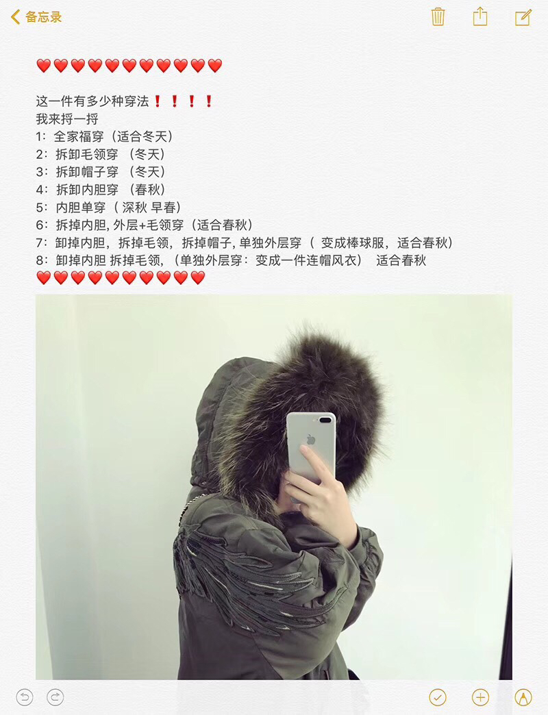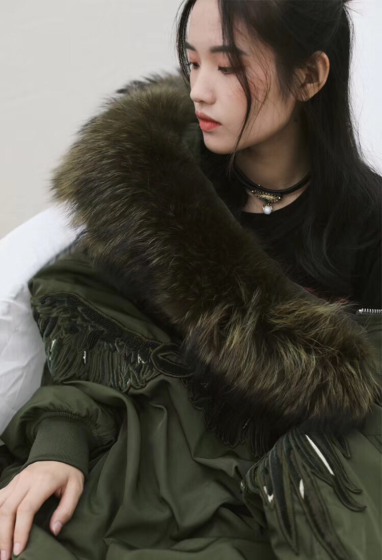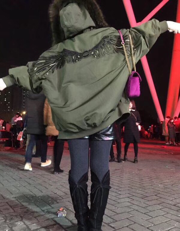 意大利miss sixty家今年的新款皮草两件套大衣‼️没看错就是皮草!!可拆卸的皮草两件套!!必须自留💪见过皮草夹克,但没见过这么霸气的!!后背大翅膀钉珠刺绣,充满了堕天使的暗黑靡丽。相信我,看一眼,就会被她俘获。官网6800已经售罄啦😱你们知道ta有多么火爆了吧!!别急,先来看一下上身效果,穿在身上整个人的气场都强大了有木有😎😎😎外层出色的防水效果,冬天无惧风雪!!别人再冷你不冷💥秋冬里面随便穿件打底,毛衣,足矣过冬!北风完全吹不透,就是这么牛逼的存在!!上身帅气,不显臃肿,超显身材✅