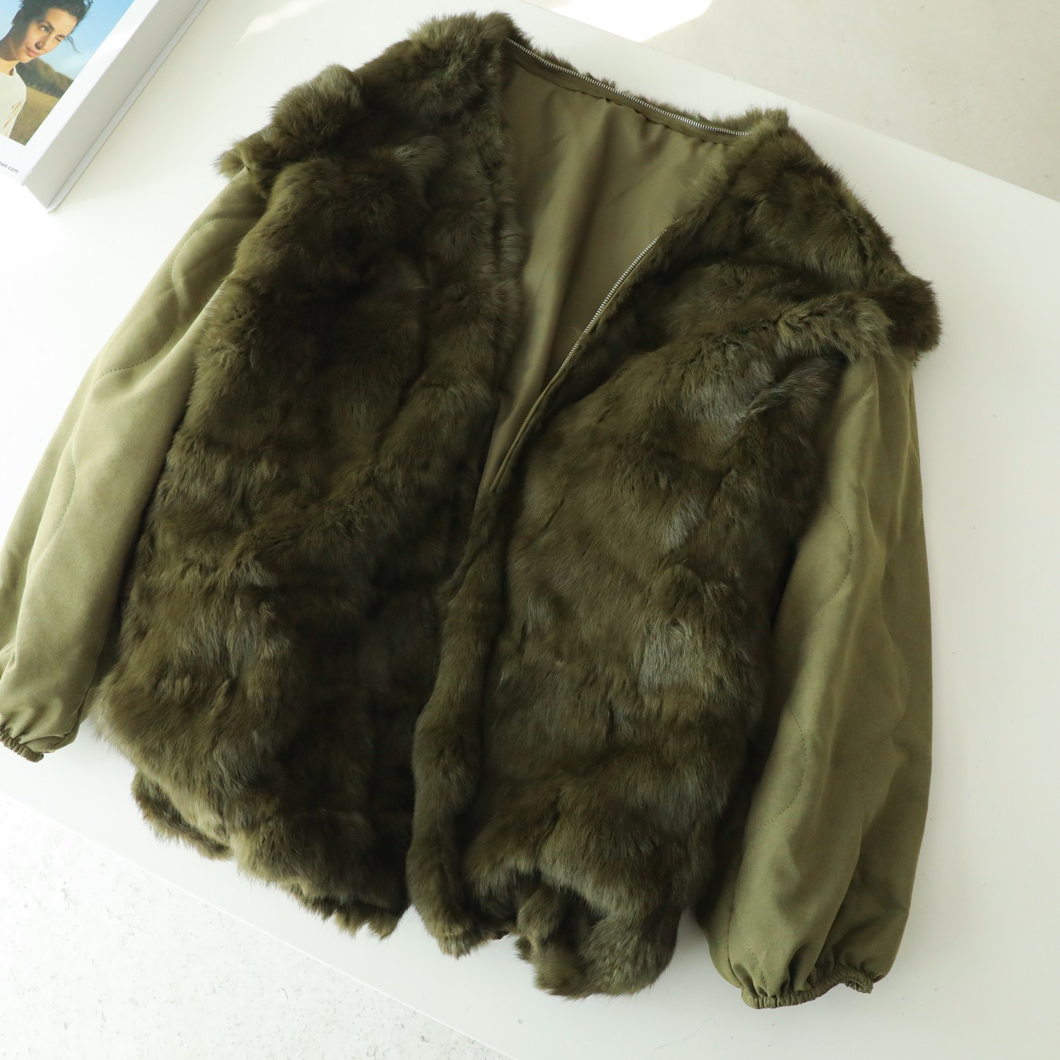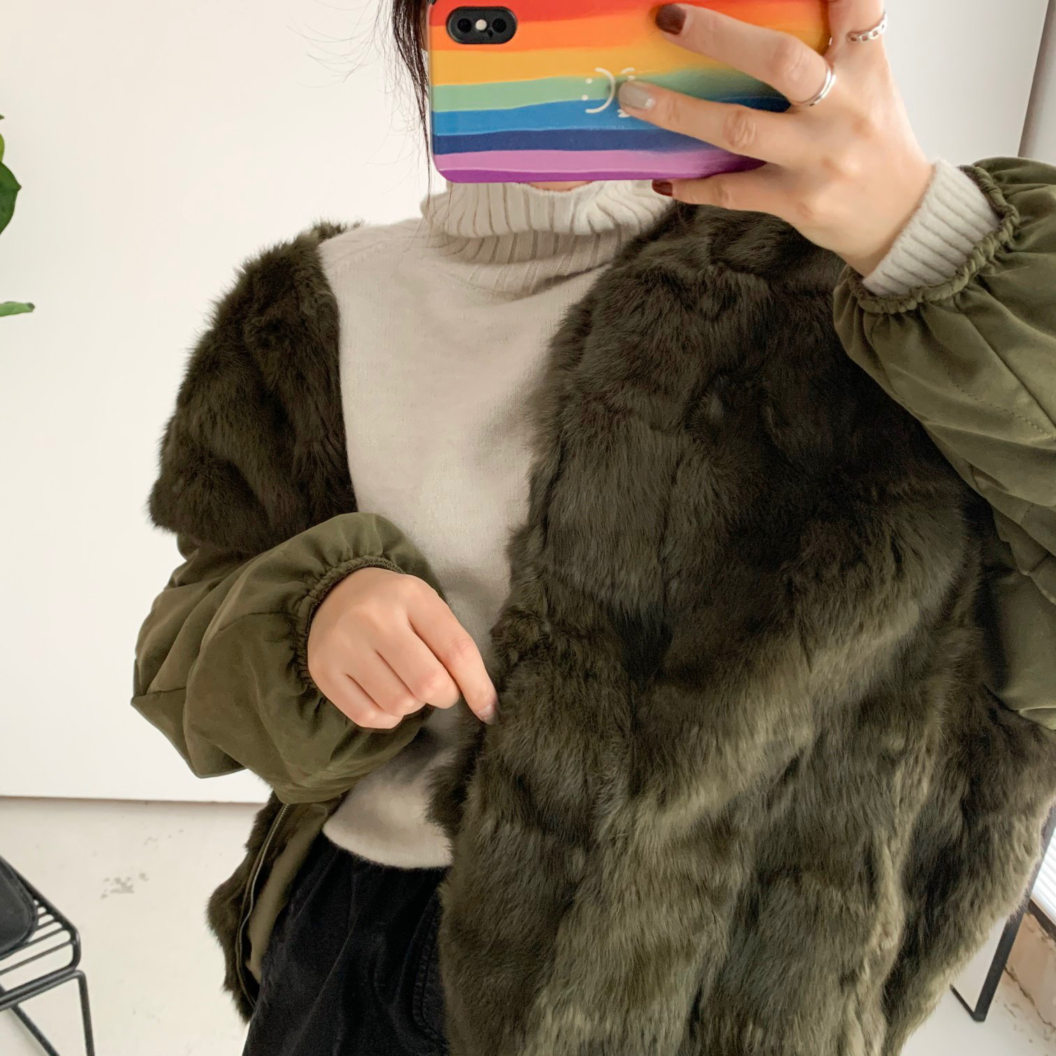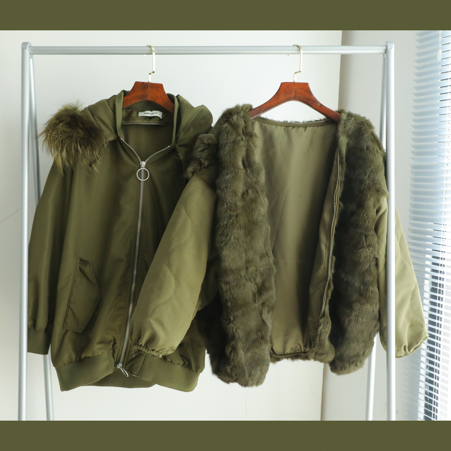 内里的兔毛内搭是可拆卸的✅真兔毛的哈!!随便验货!!真毛会有点掉毛,但是不影响穿着,只有人造毛才能给你保证不掉!!注意保养和爱惜,皮草的衣服建议干洗哈⚠️⚠️⚠️