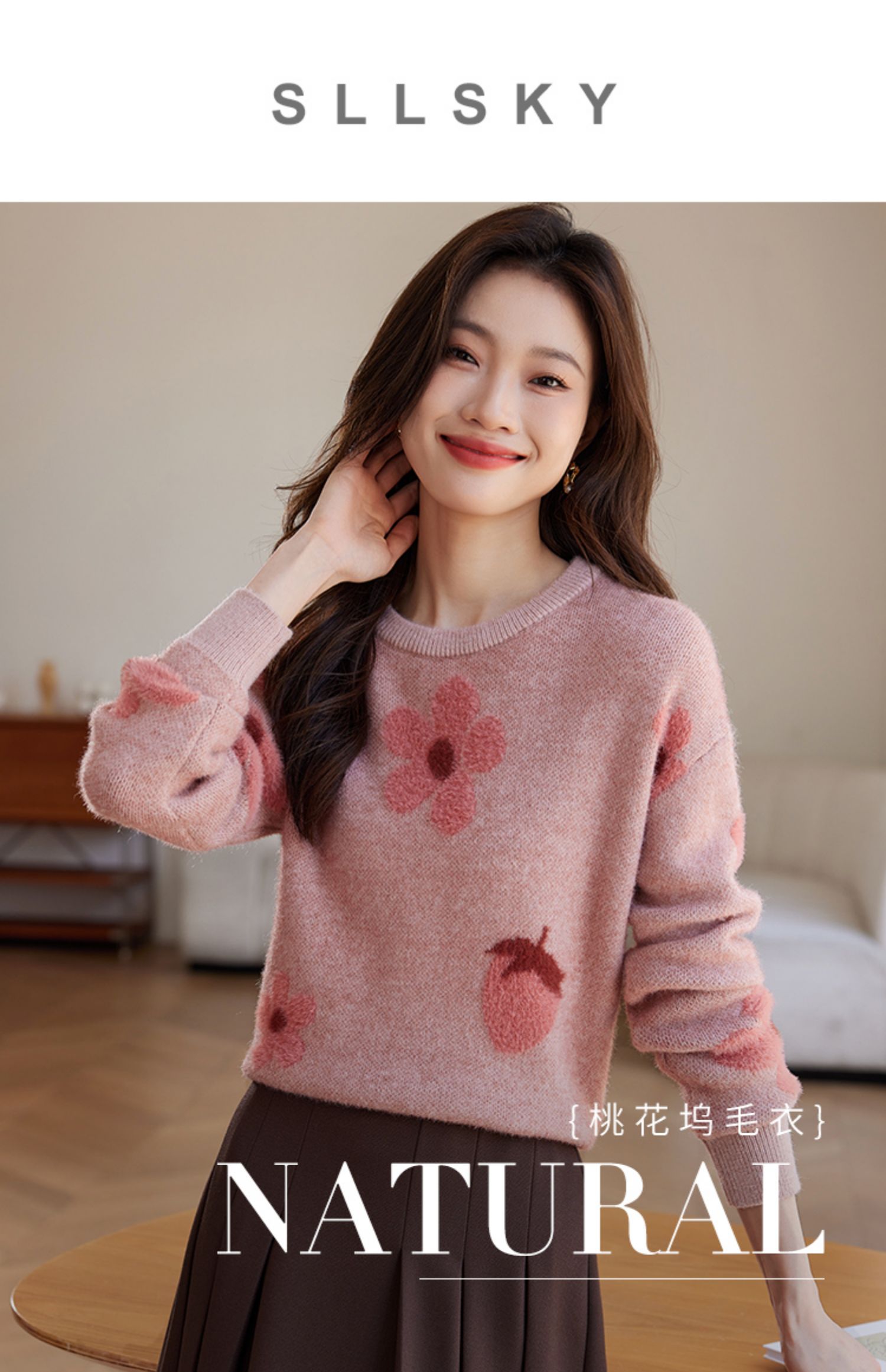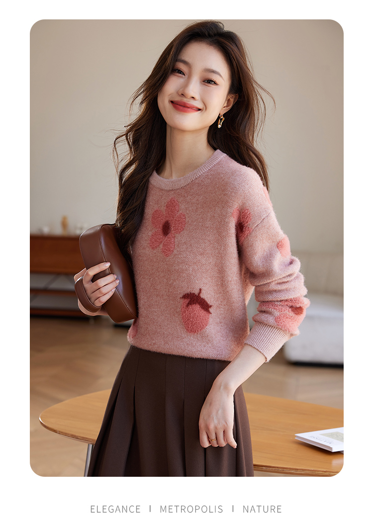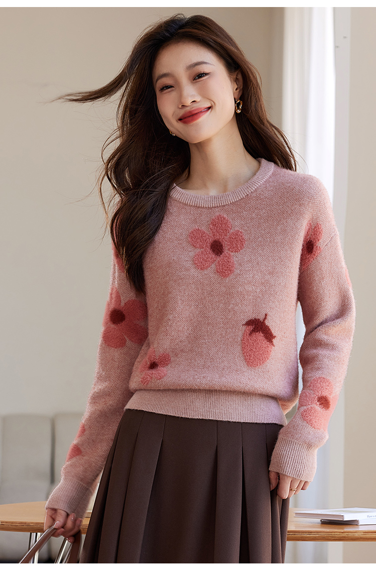 【年终特卖】熙世界毛绒感提花软糯毛衣女秋冬2025年新款慵懒风圆领针织毛线衫