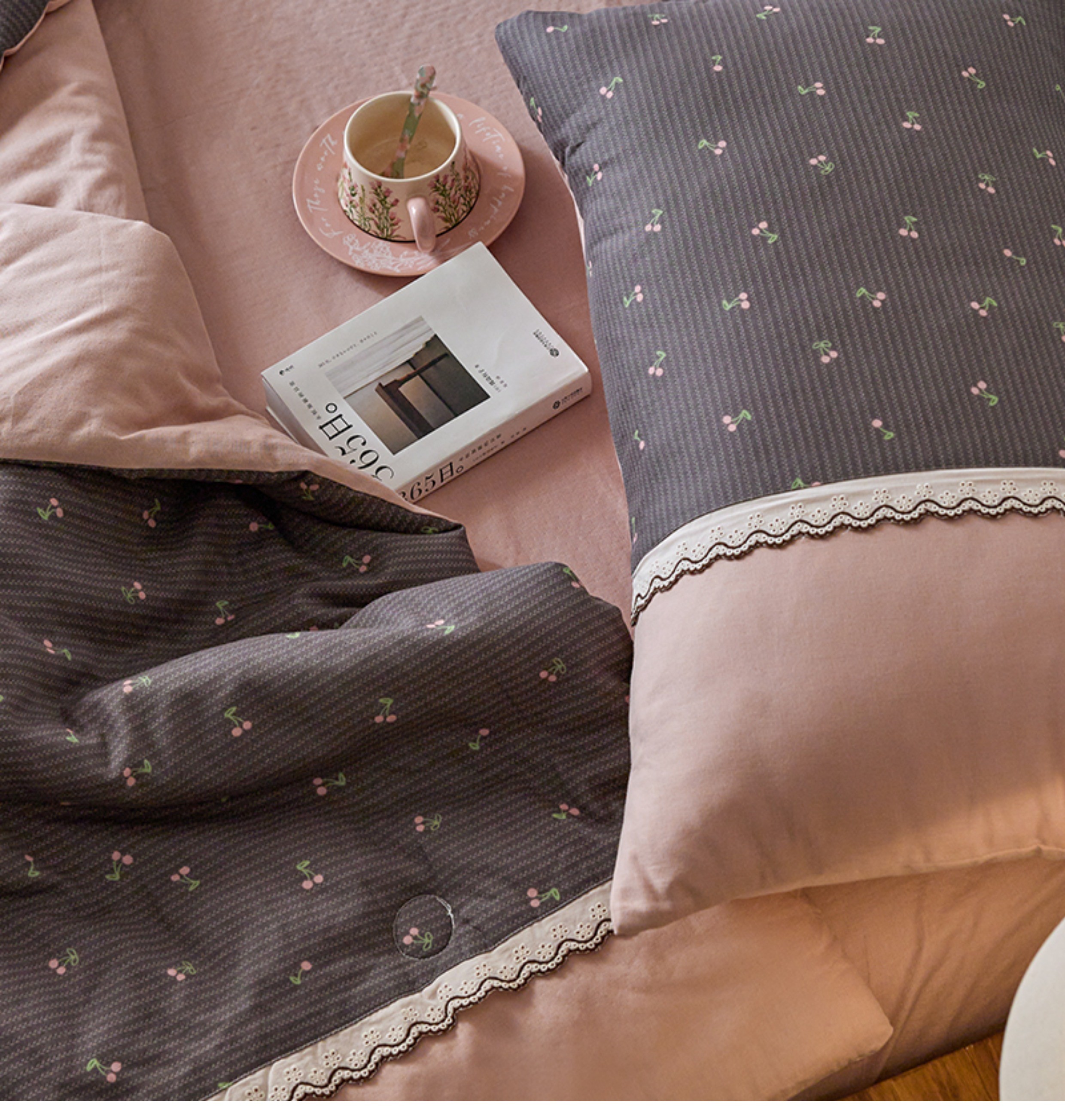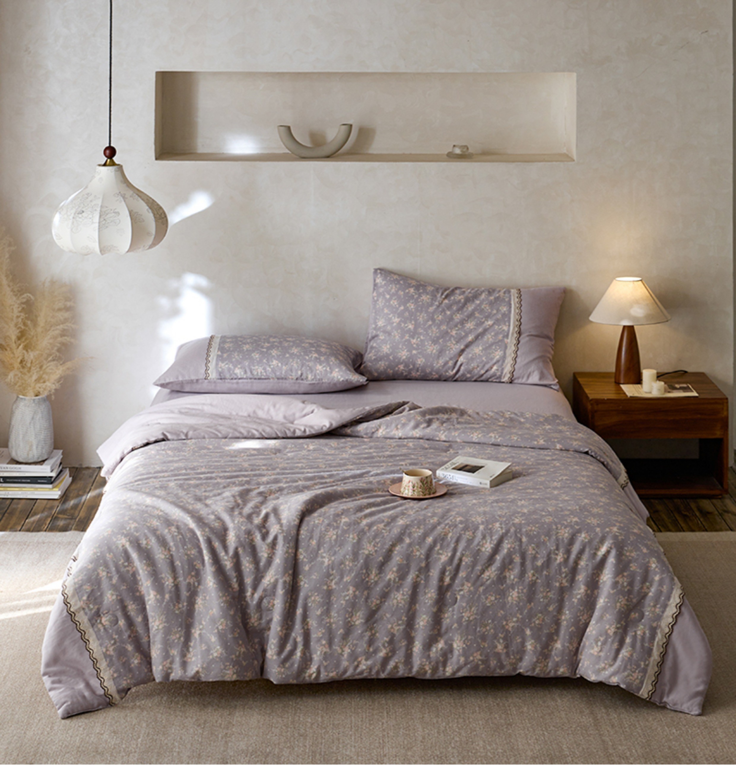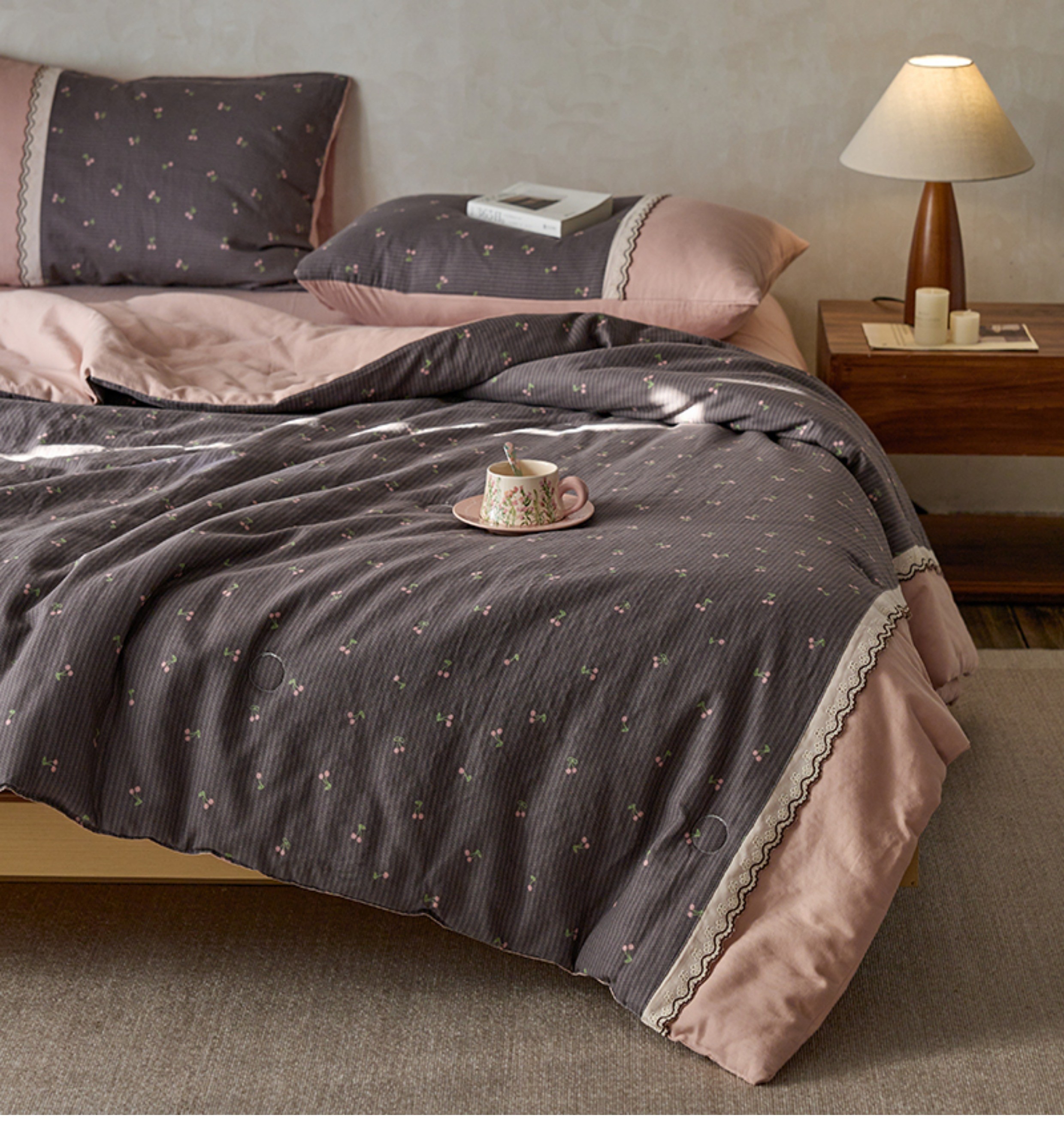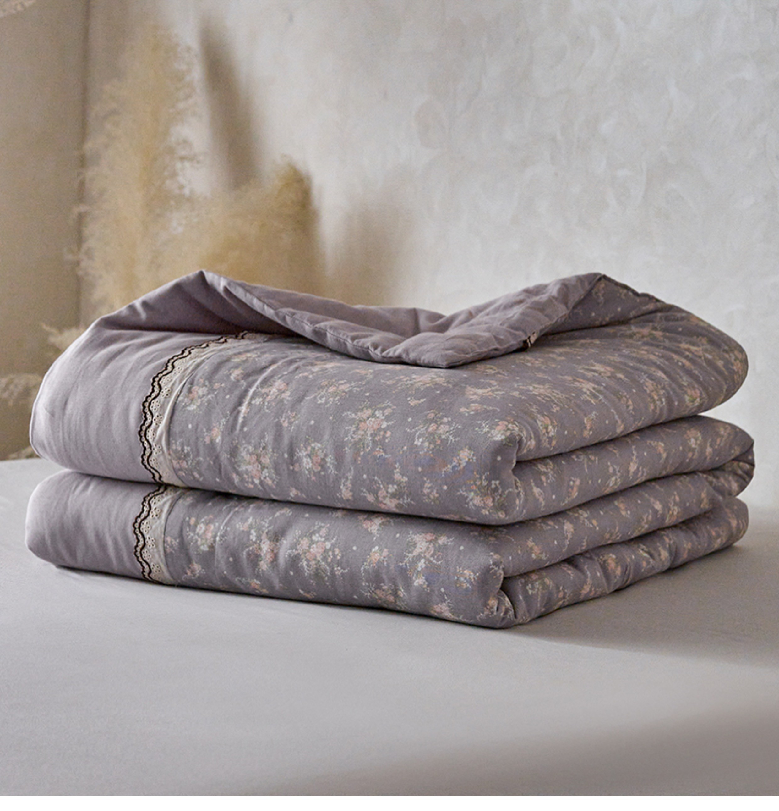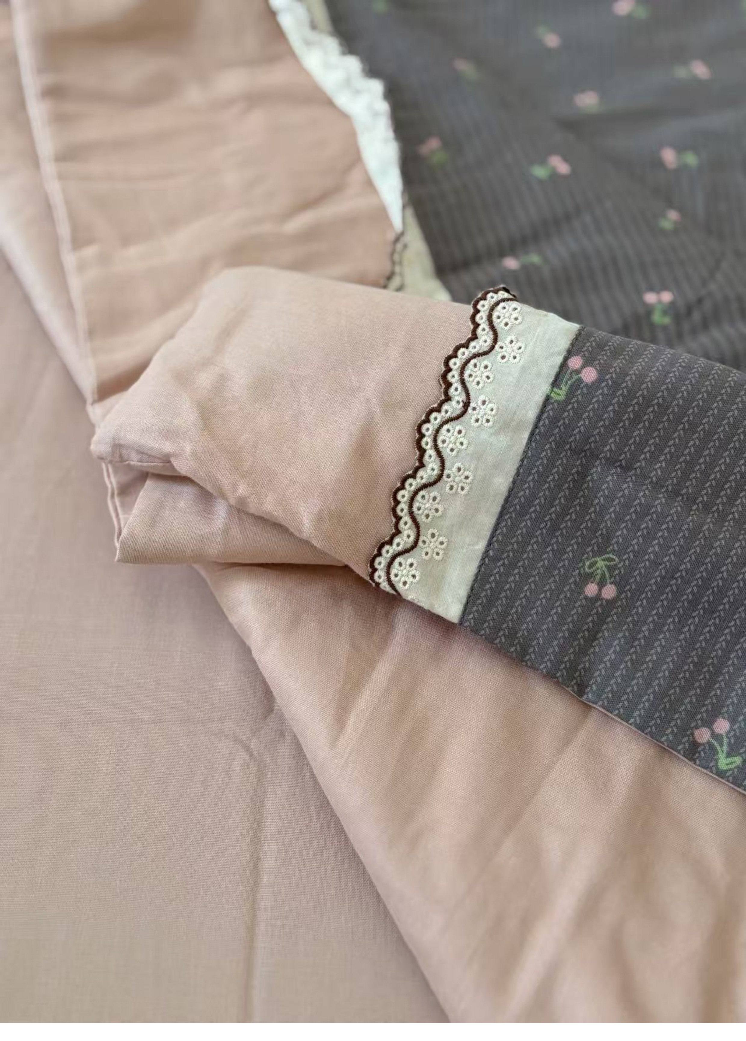 2025新款夏季全棉夏凉被复古双层纱花边款纯棉可机洗大豆被3件套