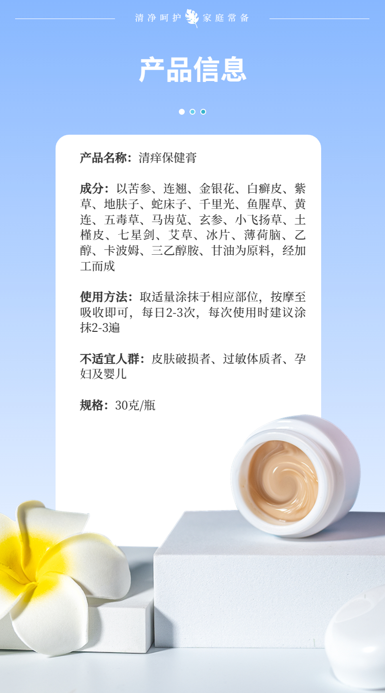 【买5送5】清痒膏 18种草本精粹 修护皮肤 拒绝反复 蚊虫叮咬私处瘙痒 清痒保健膏30g/盒