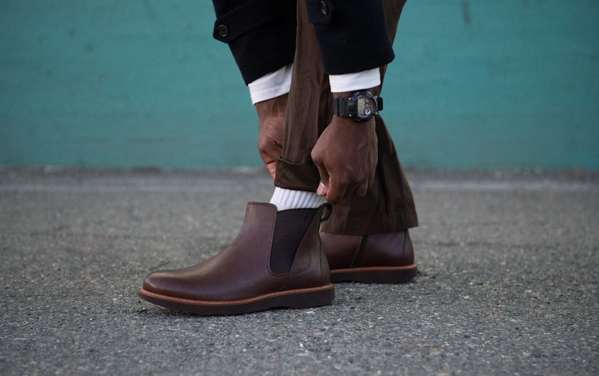 葡萄牙原产舒适轻便的高品质手工制作男士切尔西靴褐色M2171(内侧拉链设计更方便穿脱)