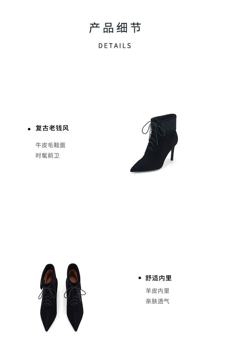 westory2024年秋冬新款优雅风细高跟百搭短靴时装靴W24DS84931