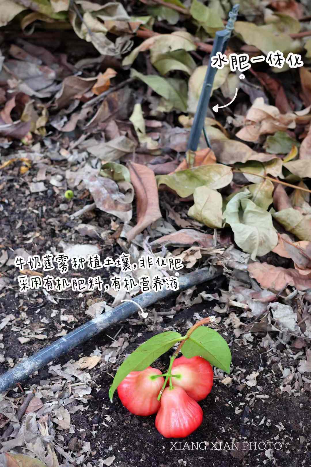牛奶莲雾之所以叫牛奶莲雾因为它用牛奶浇灌!每周定期用牛奶浇灌,再施以豆渣、鱼粉等做成的高能量蛋白汤,让莲雾颜值甜度爆表!