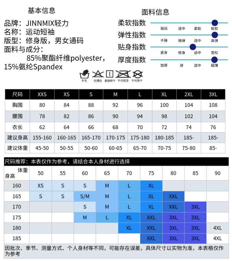 JINNMIX轻力摇滚青年速干透气运动短袖男女通码