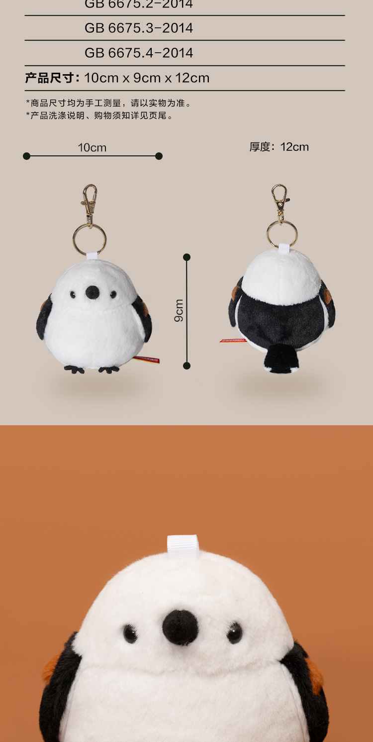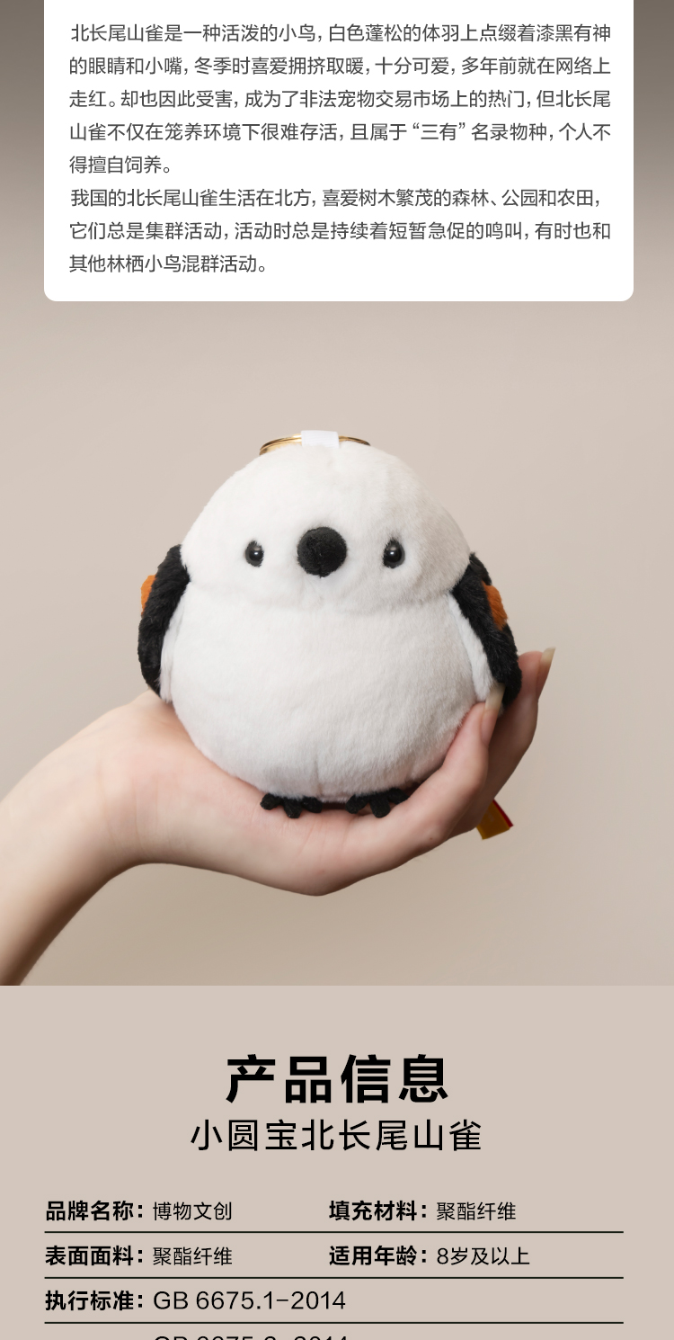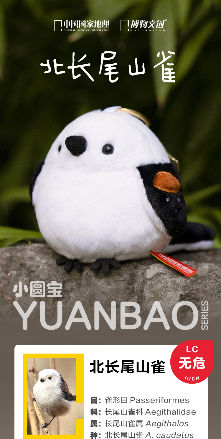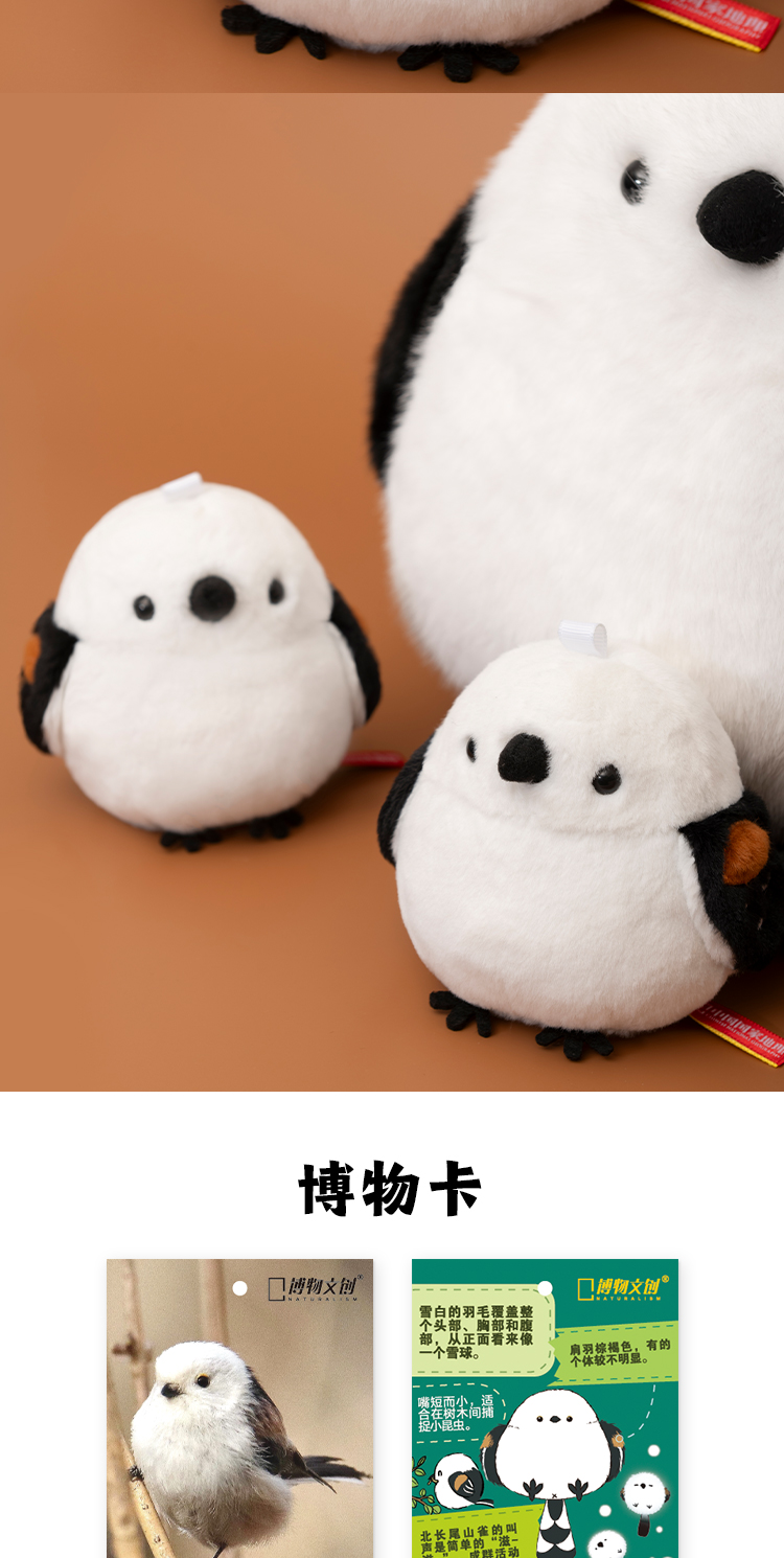 博物文创 小圆宝 北长尾山雀 肥啾啾啾小鸟毛绒玩具挂件 节日礼物