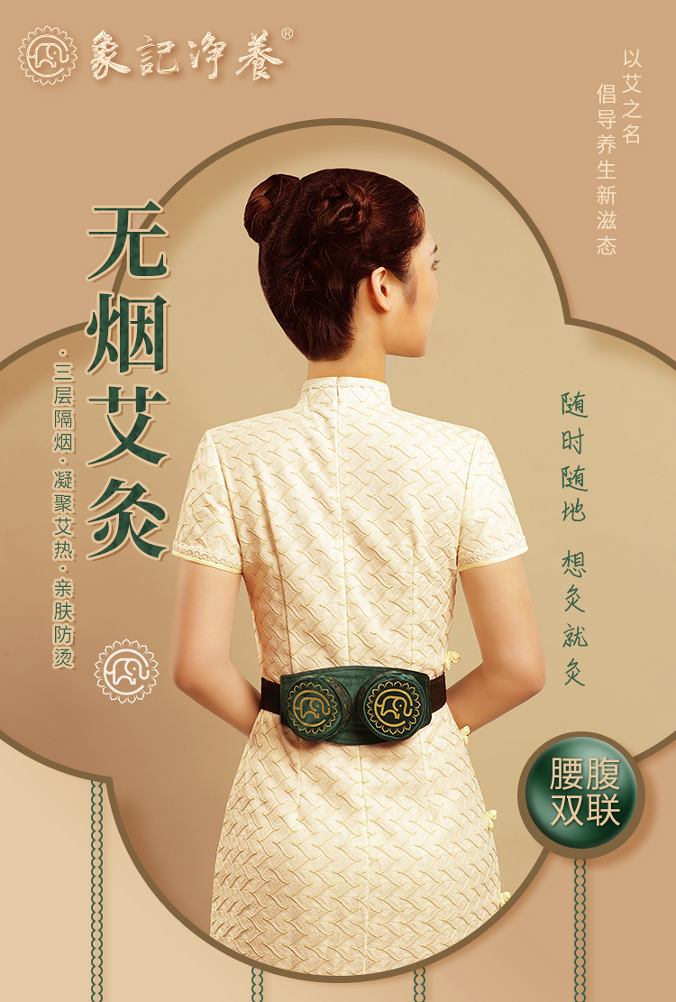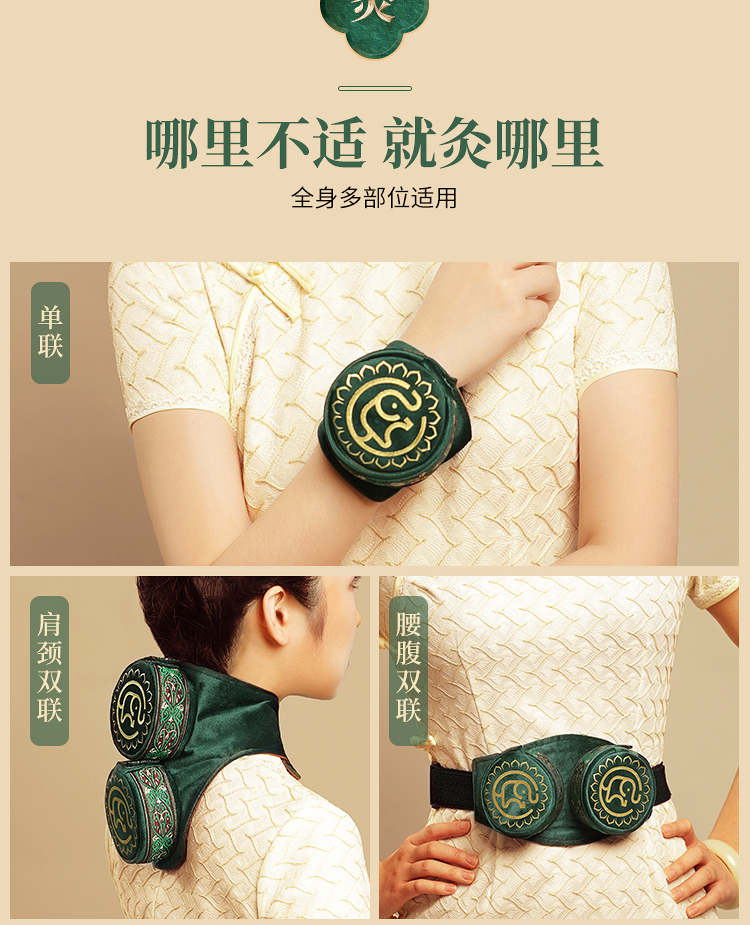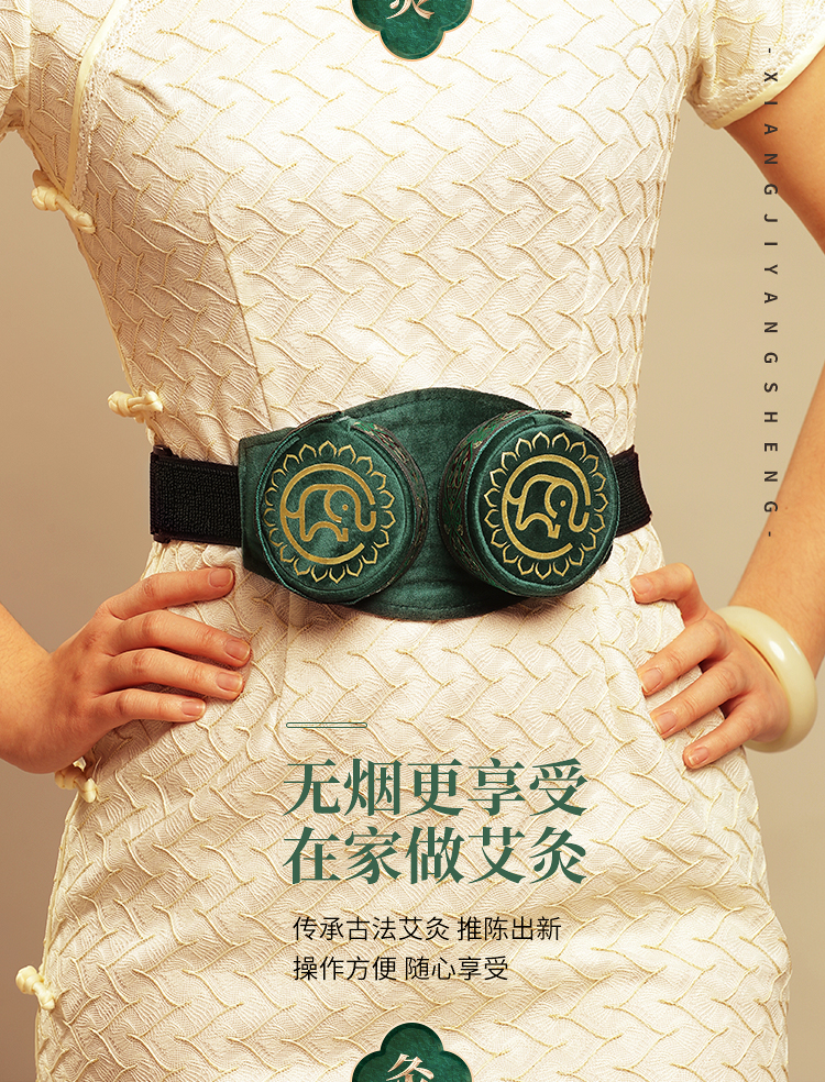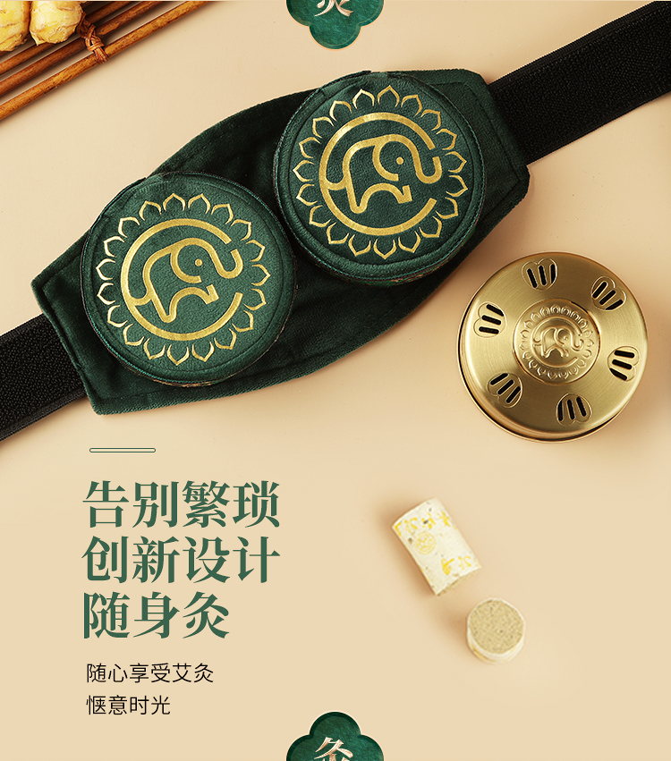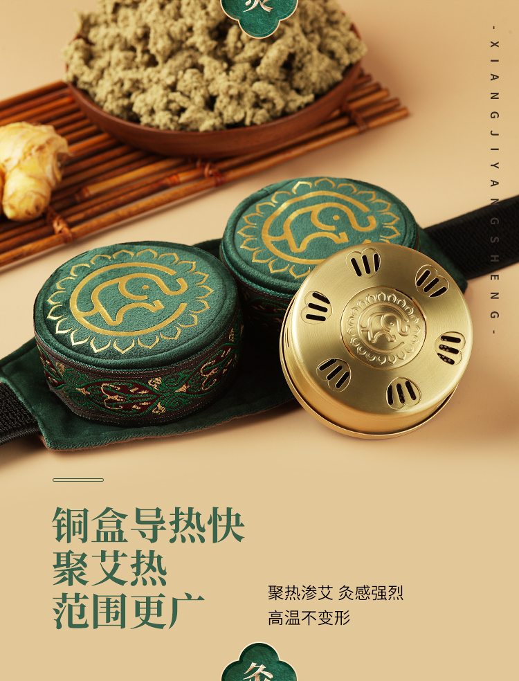 分销【腰腹二联】艾灸盒/套装--54柱艾柱+铜盒+布套+穴位图/无烟艾灸套装/随身灸