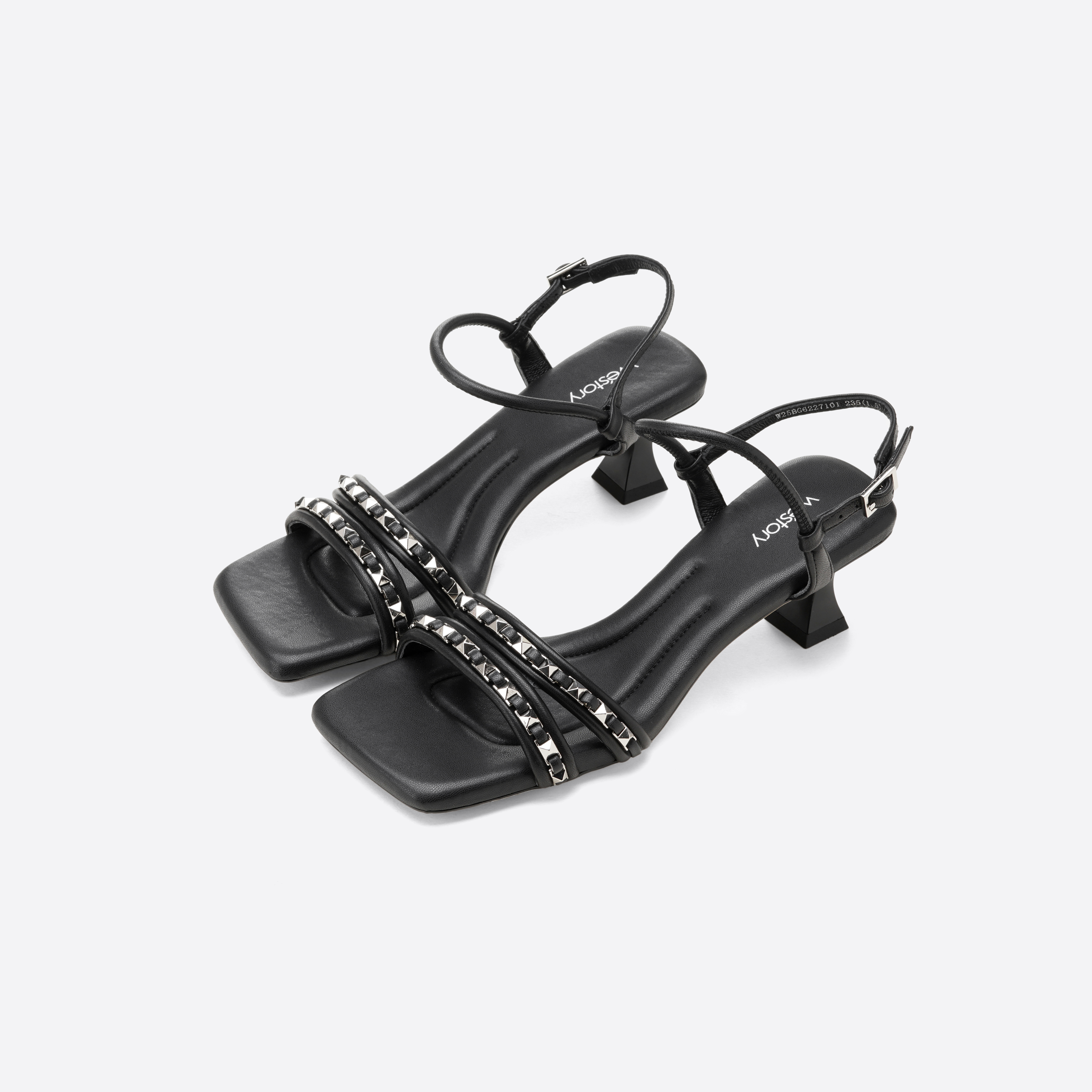 Westory2025年夏季经典铆钉点缀几何小方跟凉鞋W25BG62271