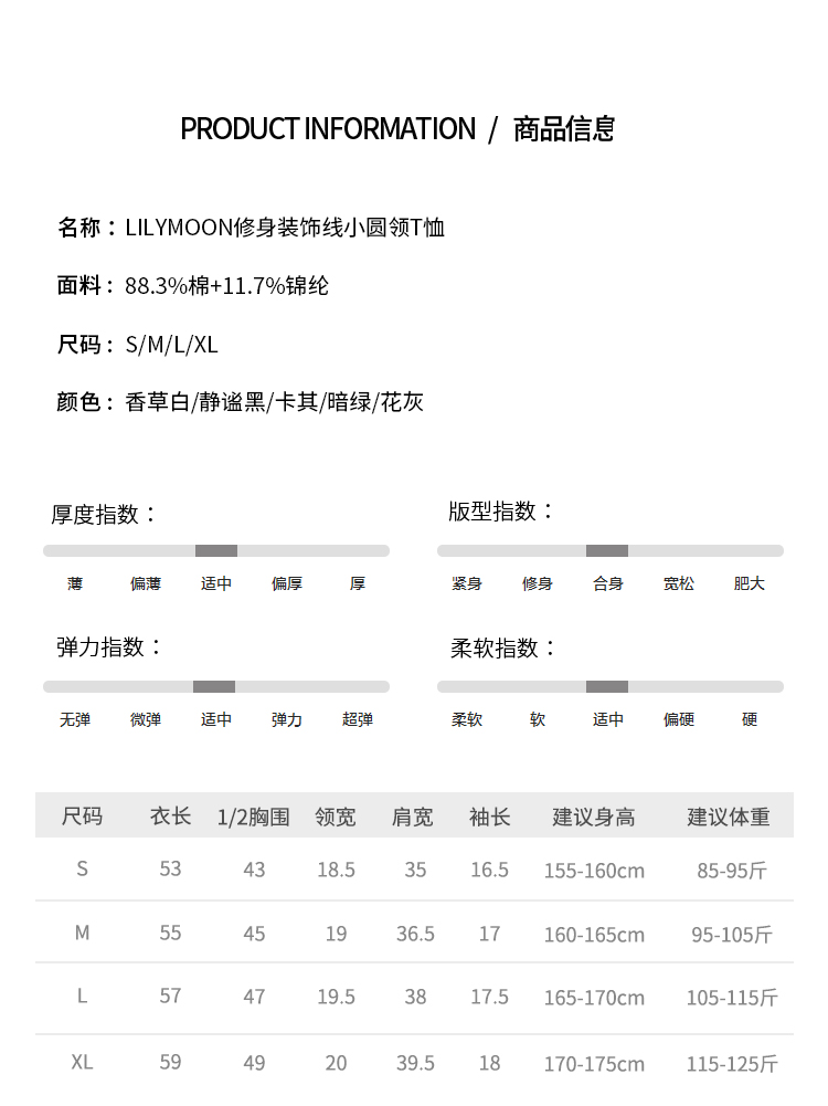 【现货】Lilymoon24夏新款短款装饰线小圆领T恤舒适时尚休闲百搭打底
