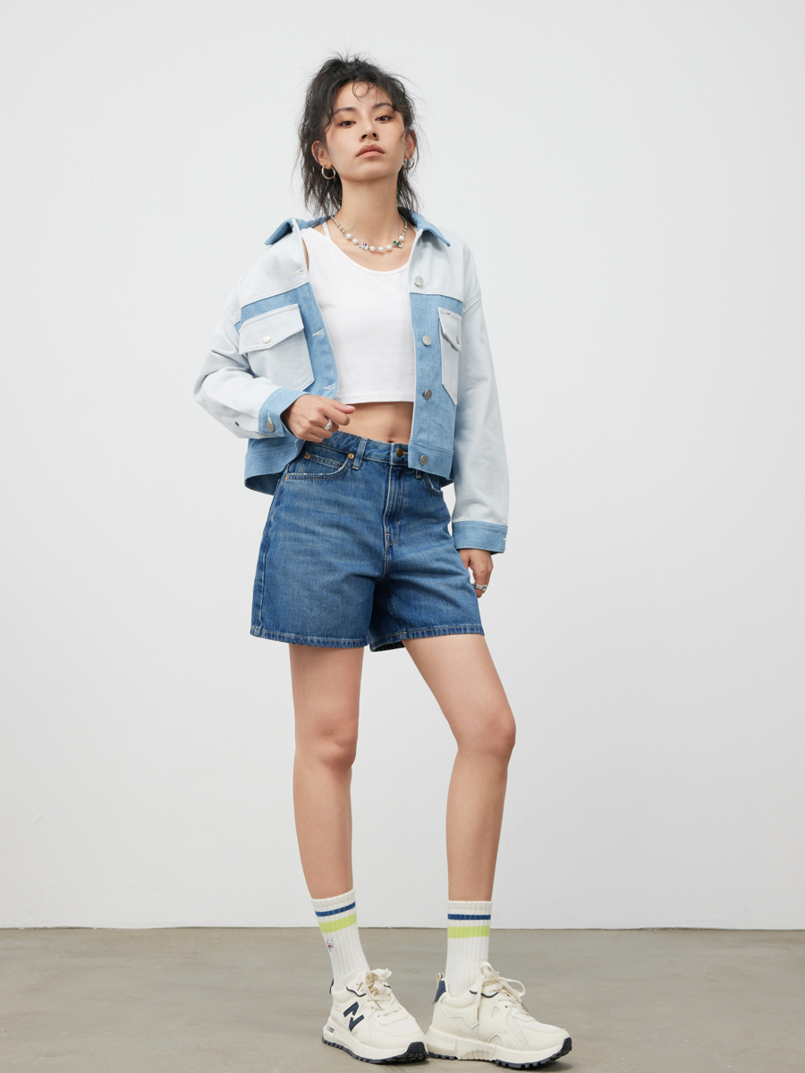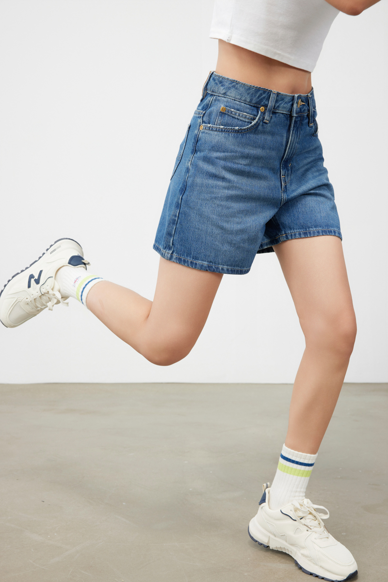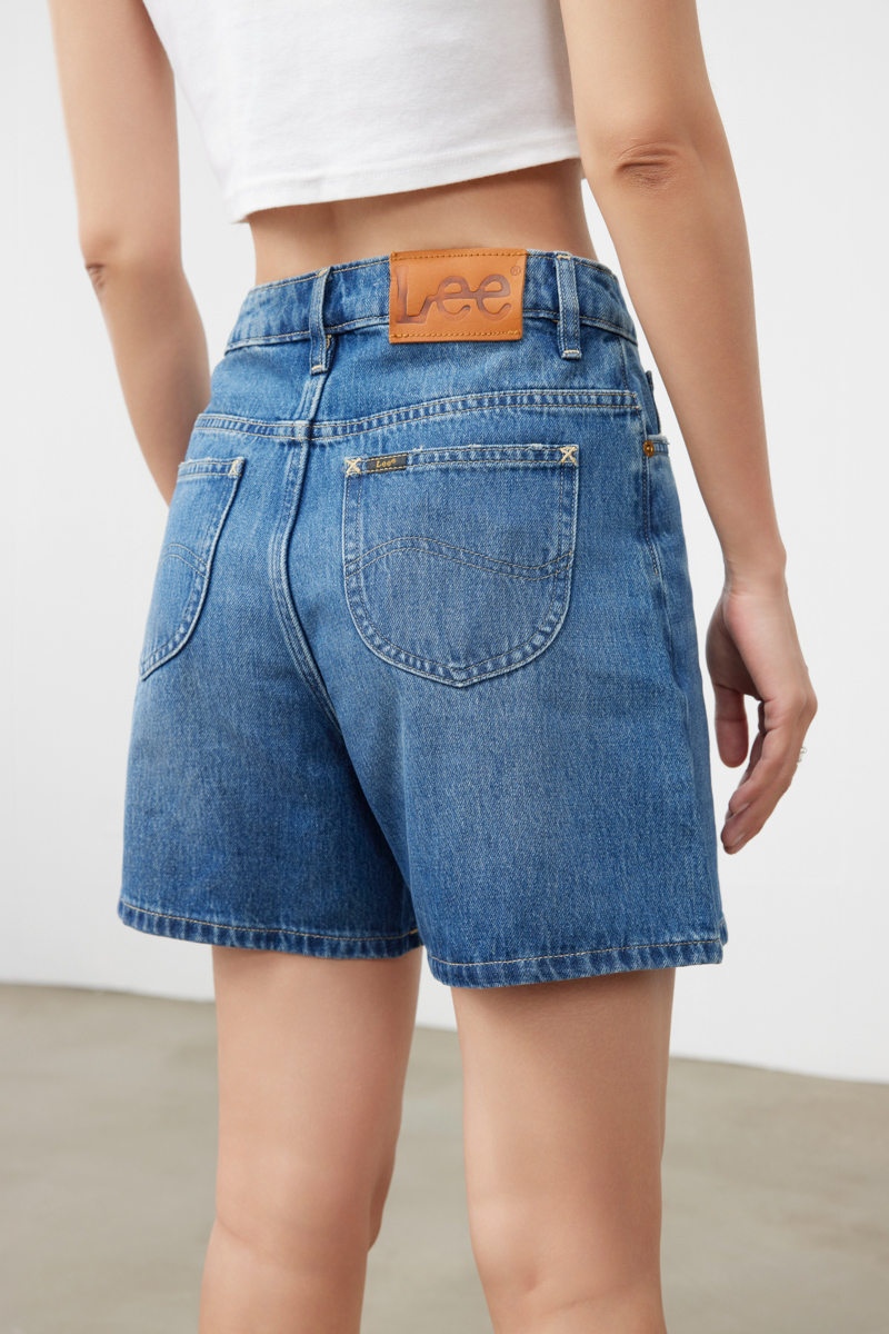 Lee商场同款女A字形中蓝色牛仔短裤LWB143653101291A03652