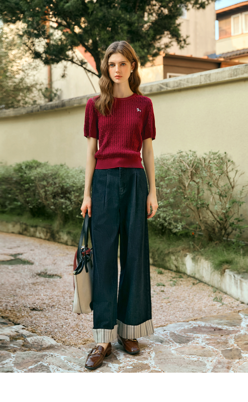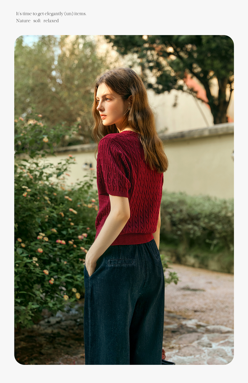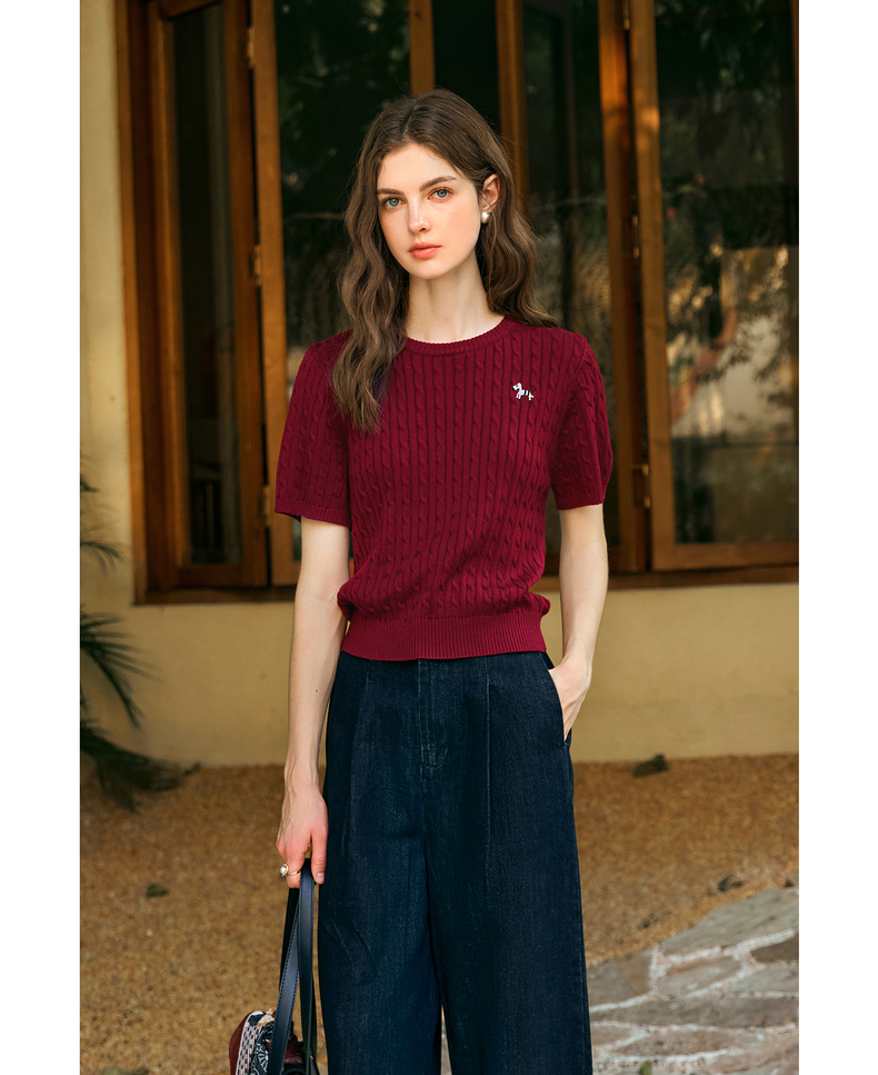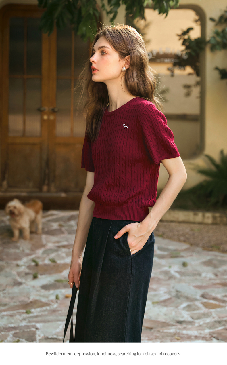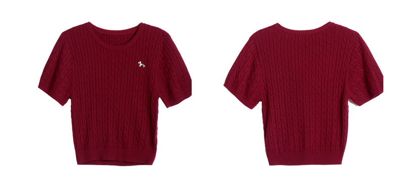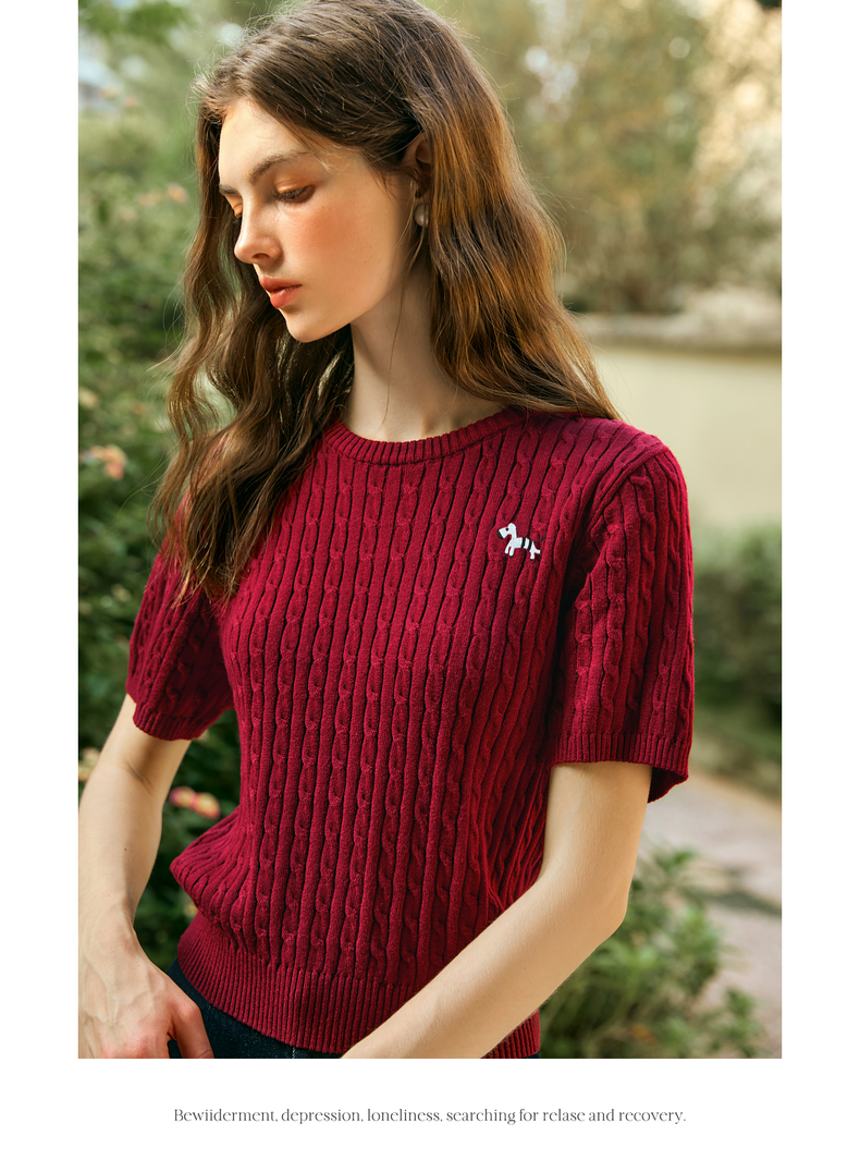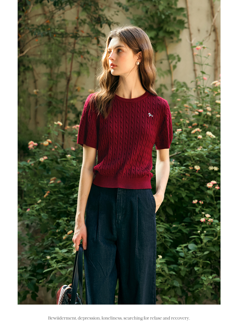 OLrain欧芮儿法式短袖T恤女冬季2024年新款通勤圆领针织套头衫