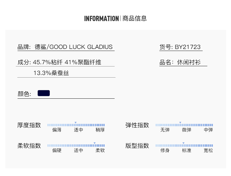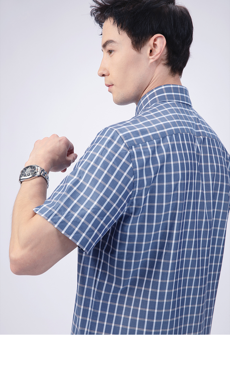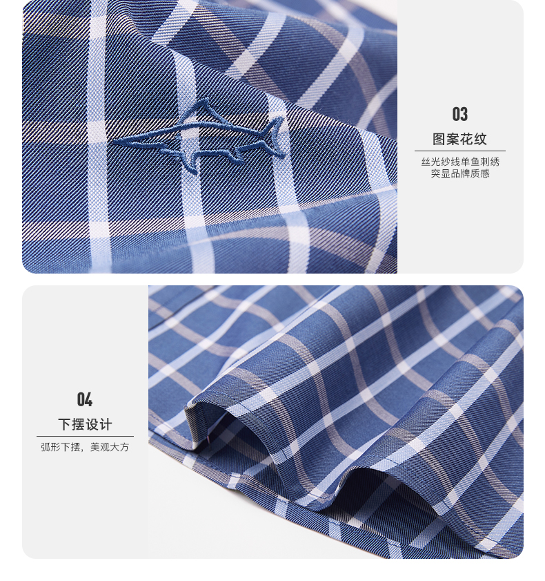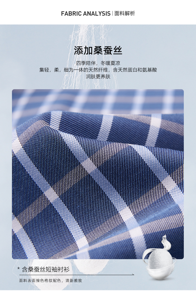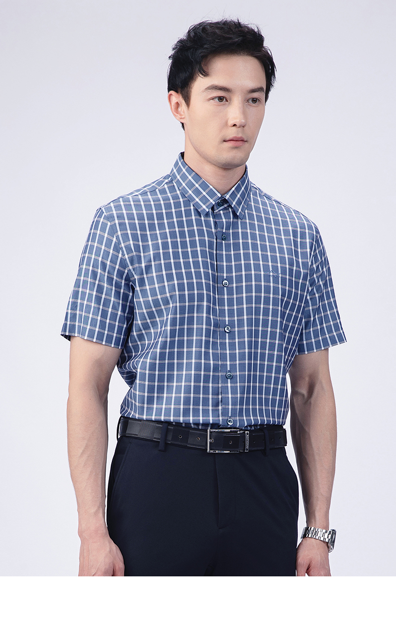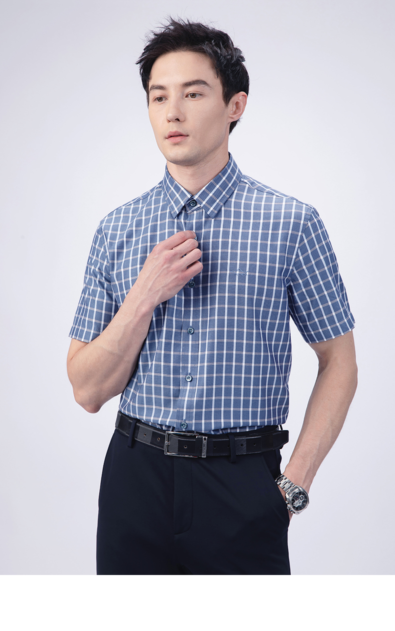 德鲨商务短袖衬衫男上衣夏新款时尚含桑蚕丝面料休闲衬衣3时尚百搭舒适透气潮流新品BY21723