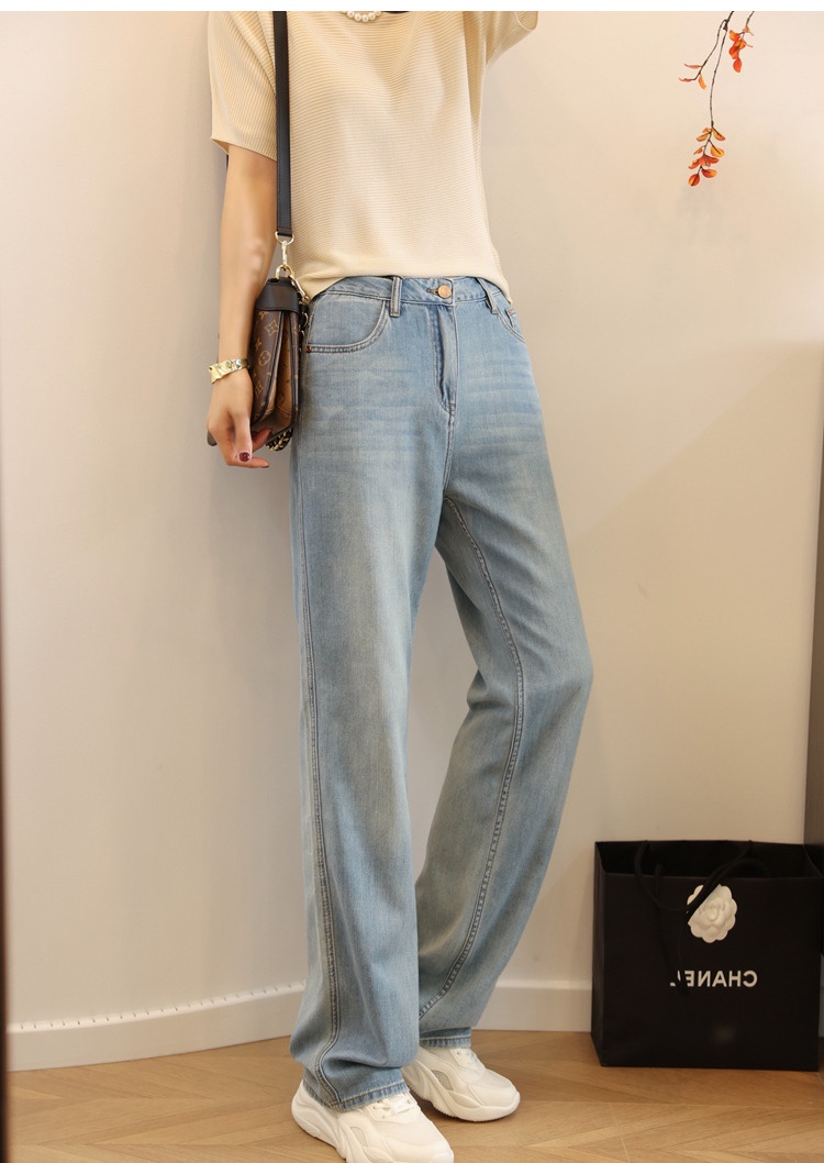 属于窄版阔腿版型 加上莱塞尔的面料,