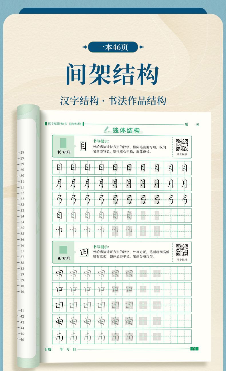 楷书秘籍成年人正楷练字帖初学者练字笔画偏旁间架结构含视频讲解硬笔书法初高中成人常用7000字男女生钢笔练字