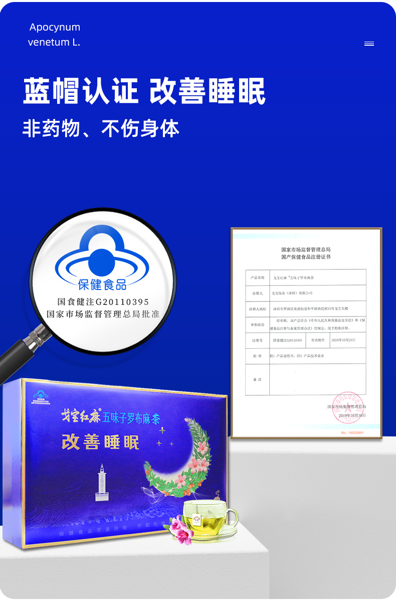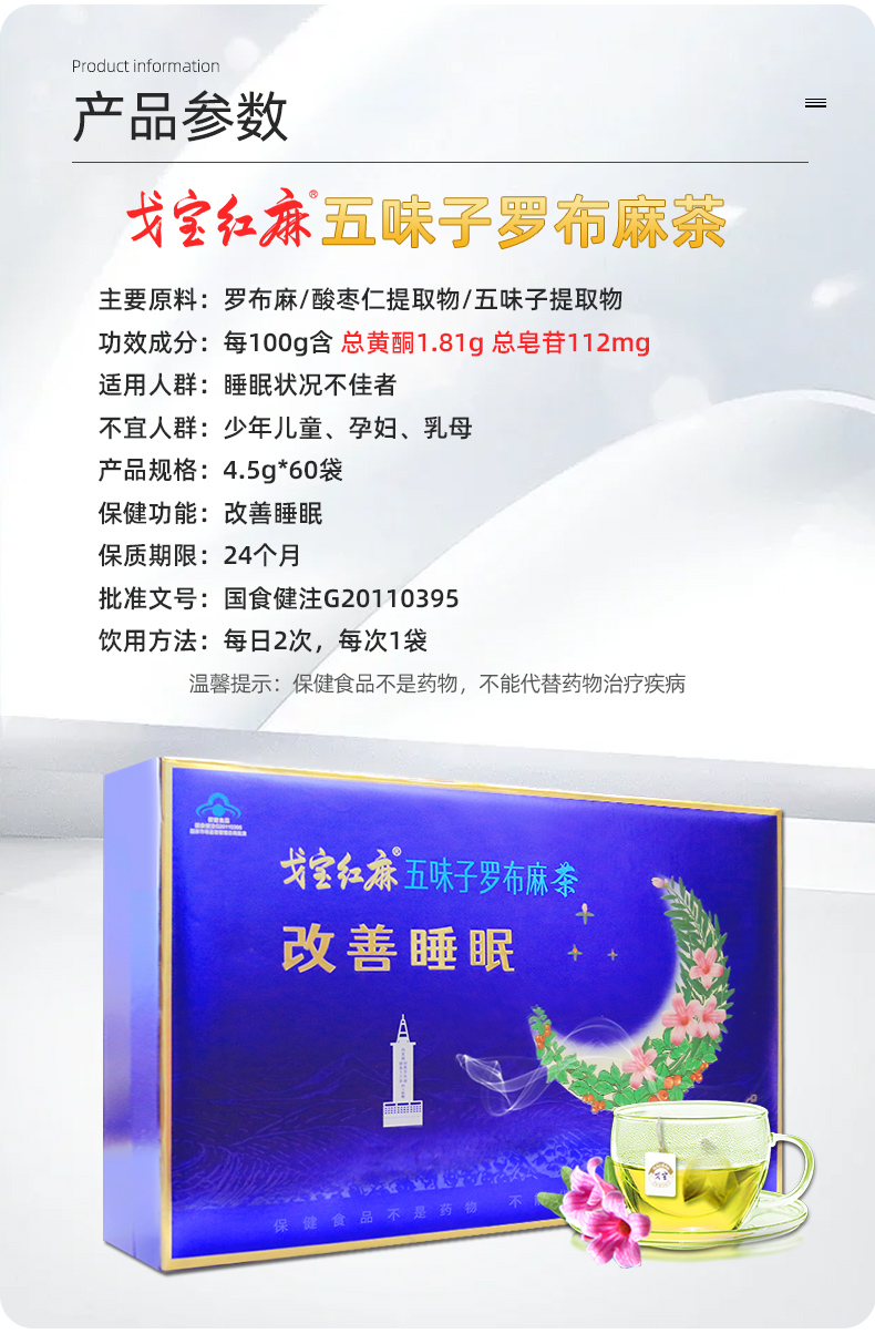 戈宝红麻罗布麻茶 改善睡眠茶男女养生茶包 适合睡眠状况不佳者 五味子酸枣仁罗布麻茶 新疆原产地 4.5g/袋*60袋
