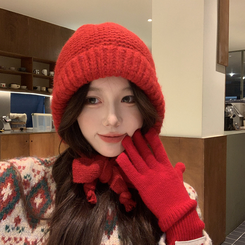 【一帽两用❗️巴拉克拉法帽子】保暖御寒,显脸小,柔软舒适,软糯亲肤!赫本风绑带堆堆帽女冬季保暖圣诞红毛线帽本命年新年马年