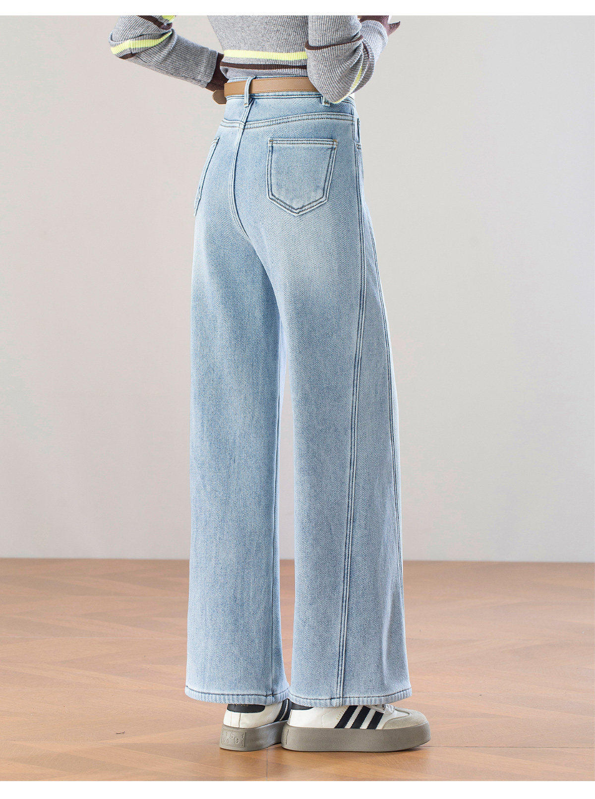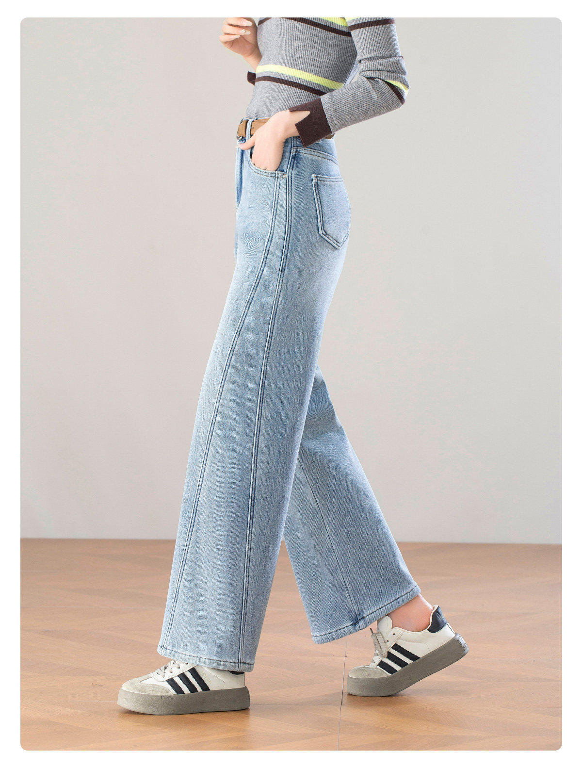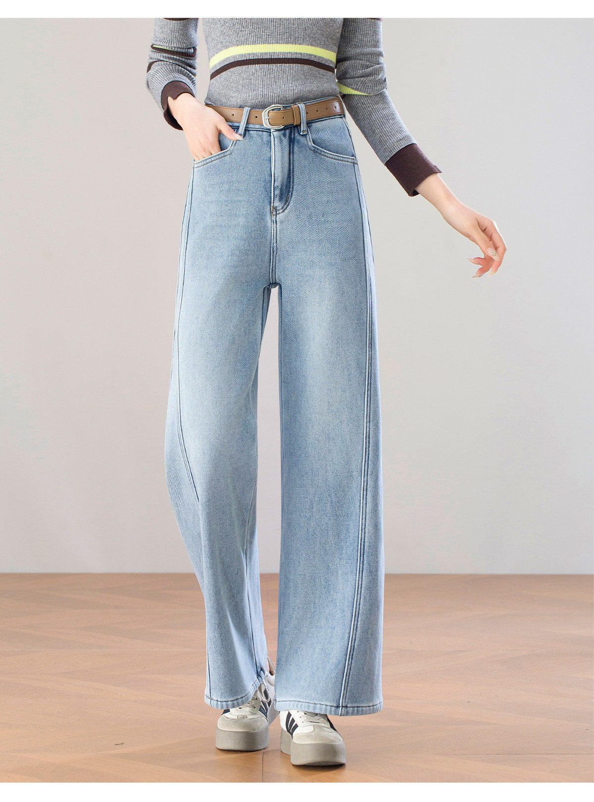 「自」全新升级【铂金会员174/天猫229/差价55】(40537)洛诗琳浅蓝色高腰弯刀牛仔裤2026新款百搭加绒显瘦阔腿裤女