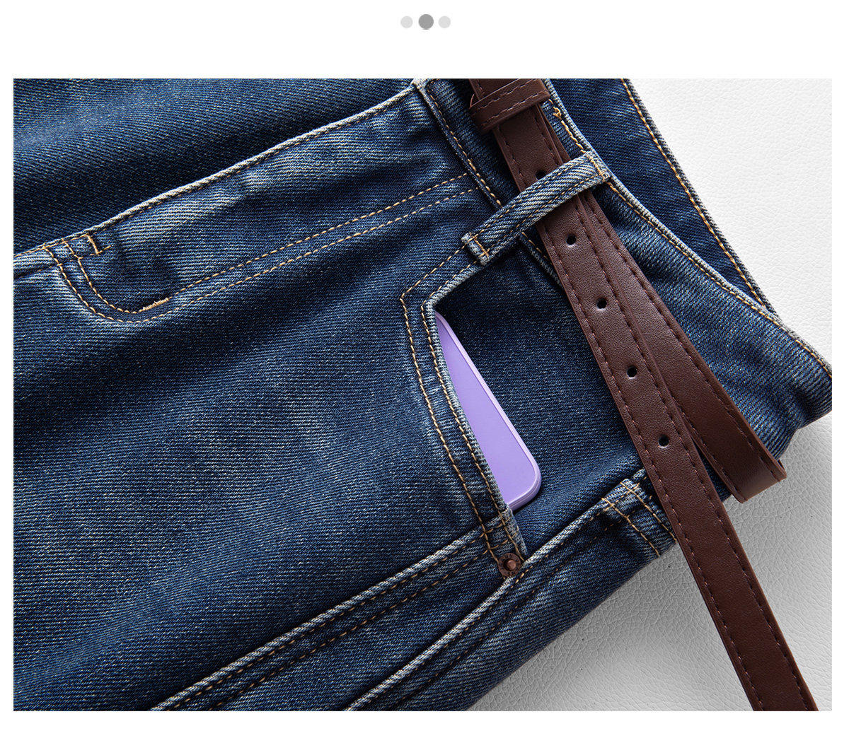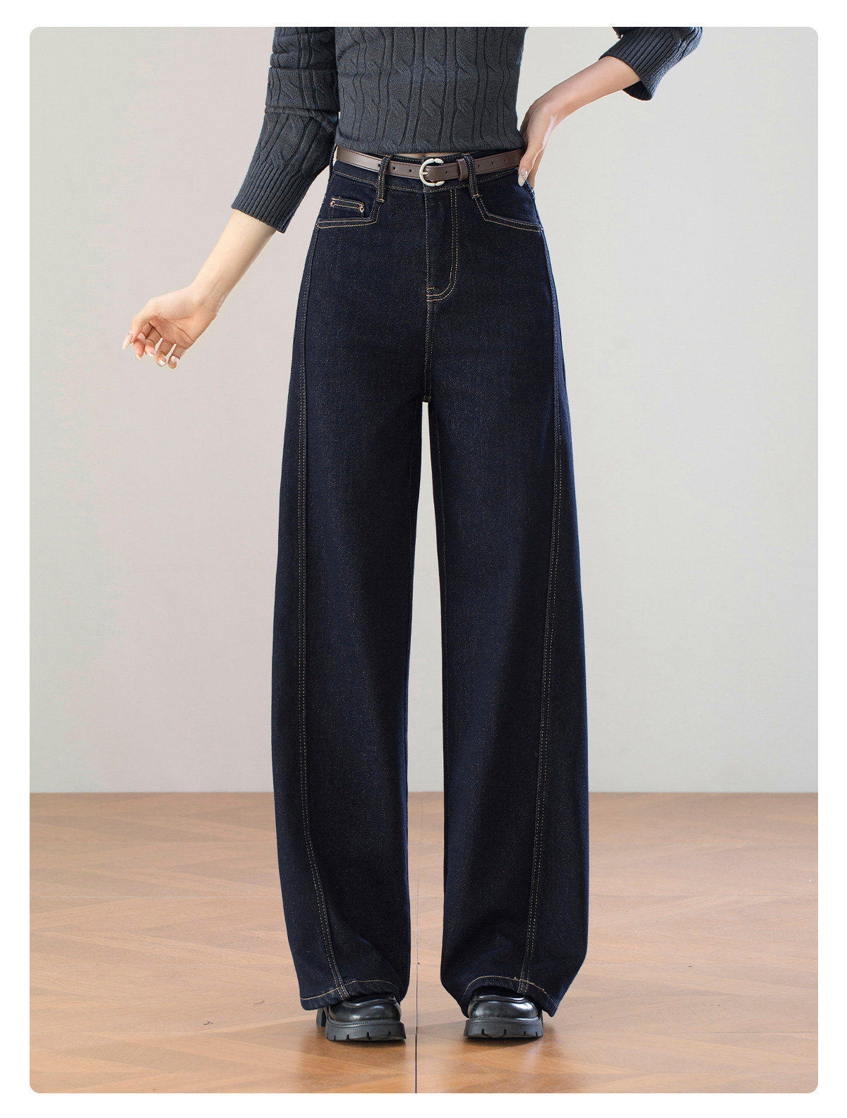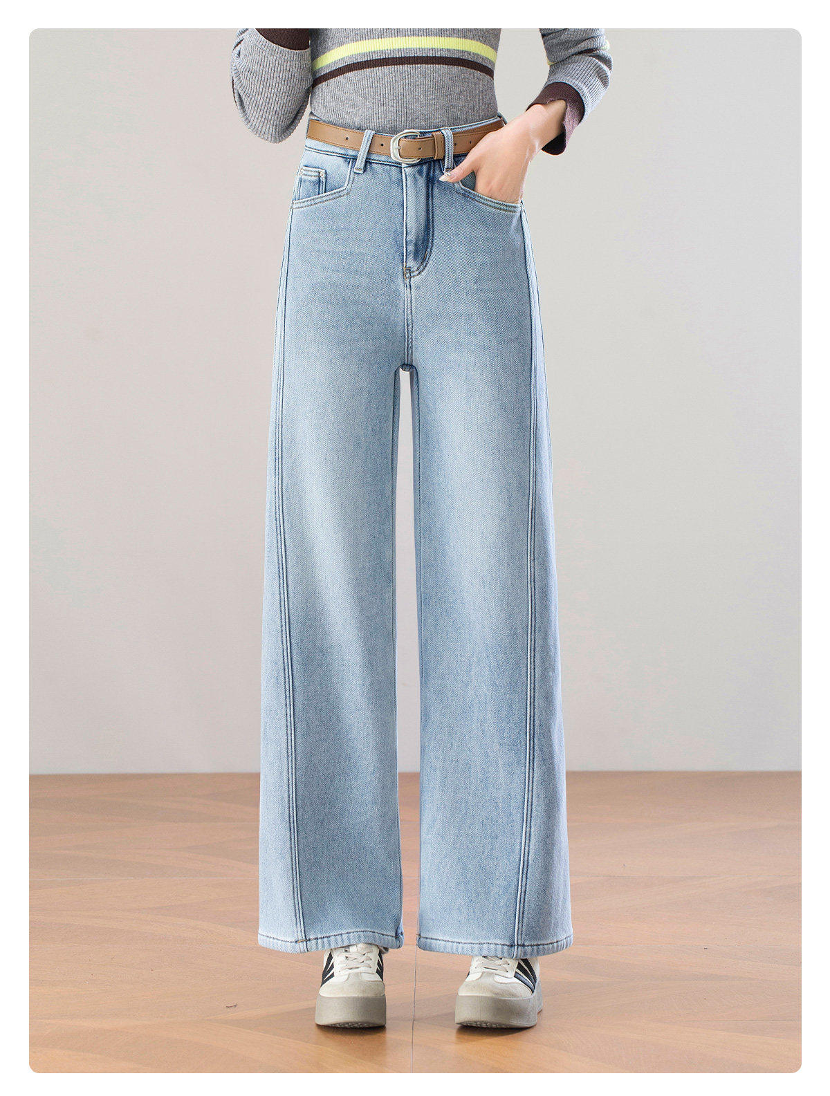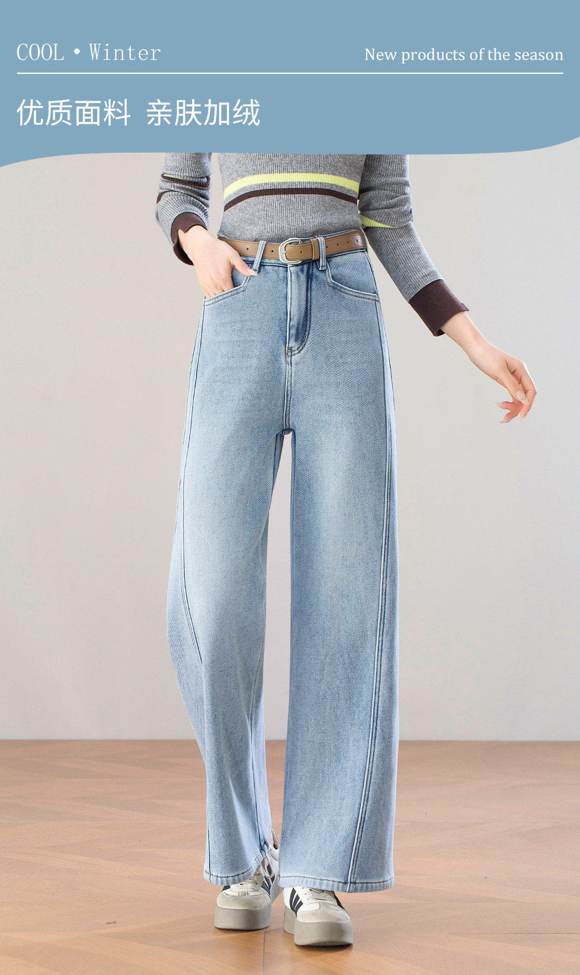 「自」全新升级【铂金会员174/天猫229/差价55】(40537)洛诗琳浅蓝色高腰弯刀牛仔裤2026新款百搭加绒显瘦阔腿裤女