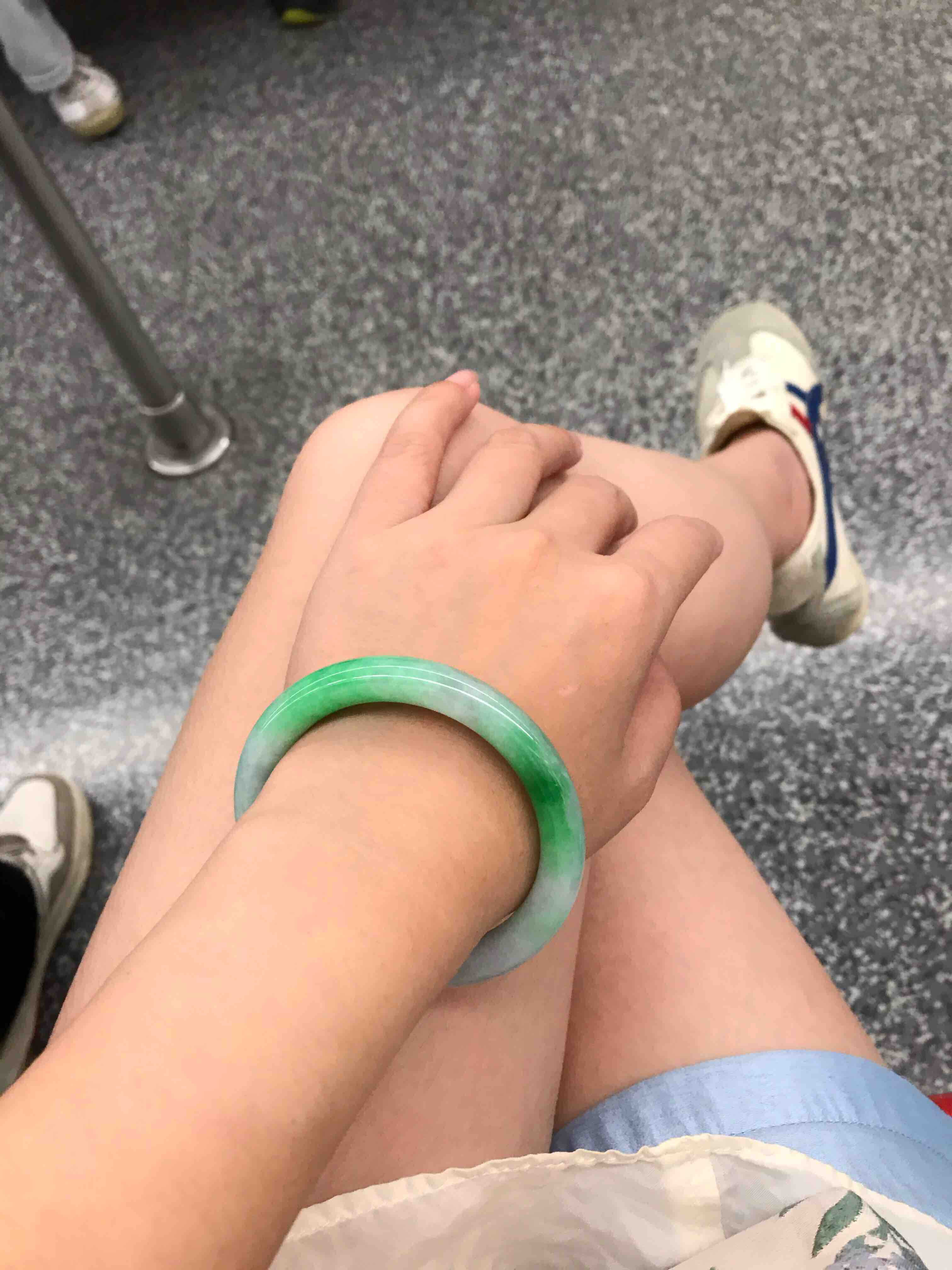 底桩细腻白净,带两段阳绿