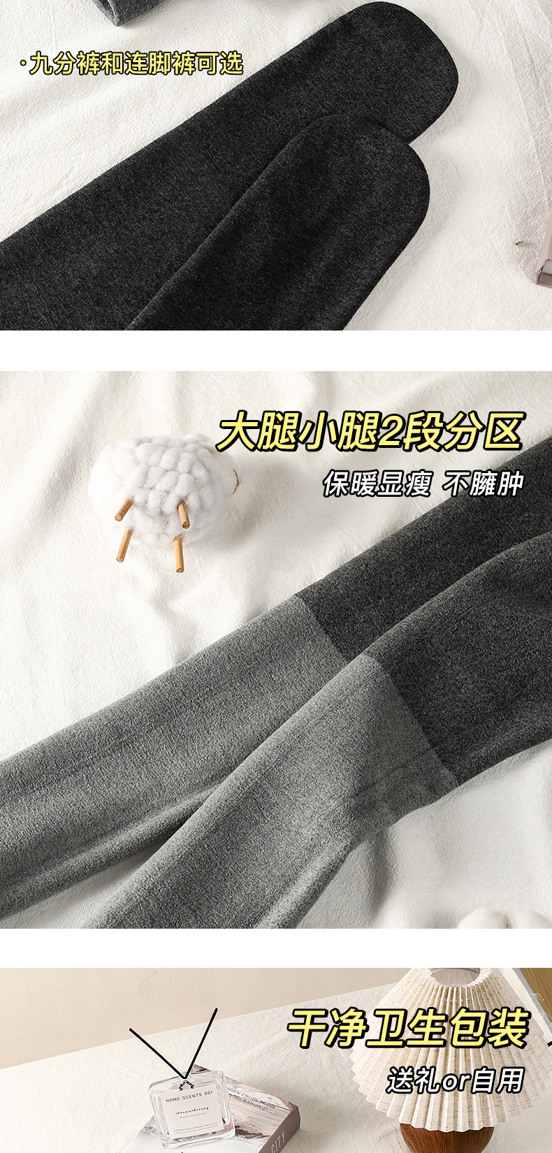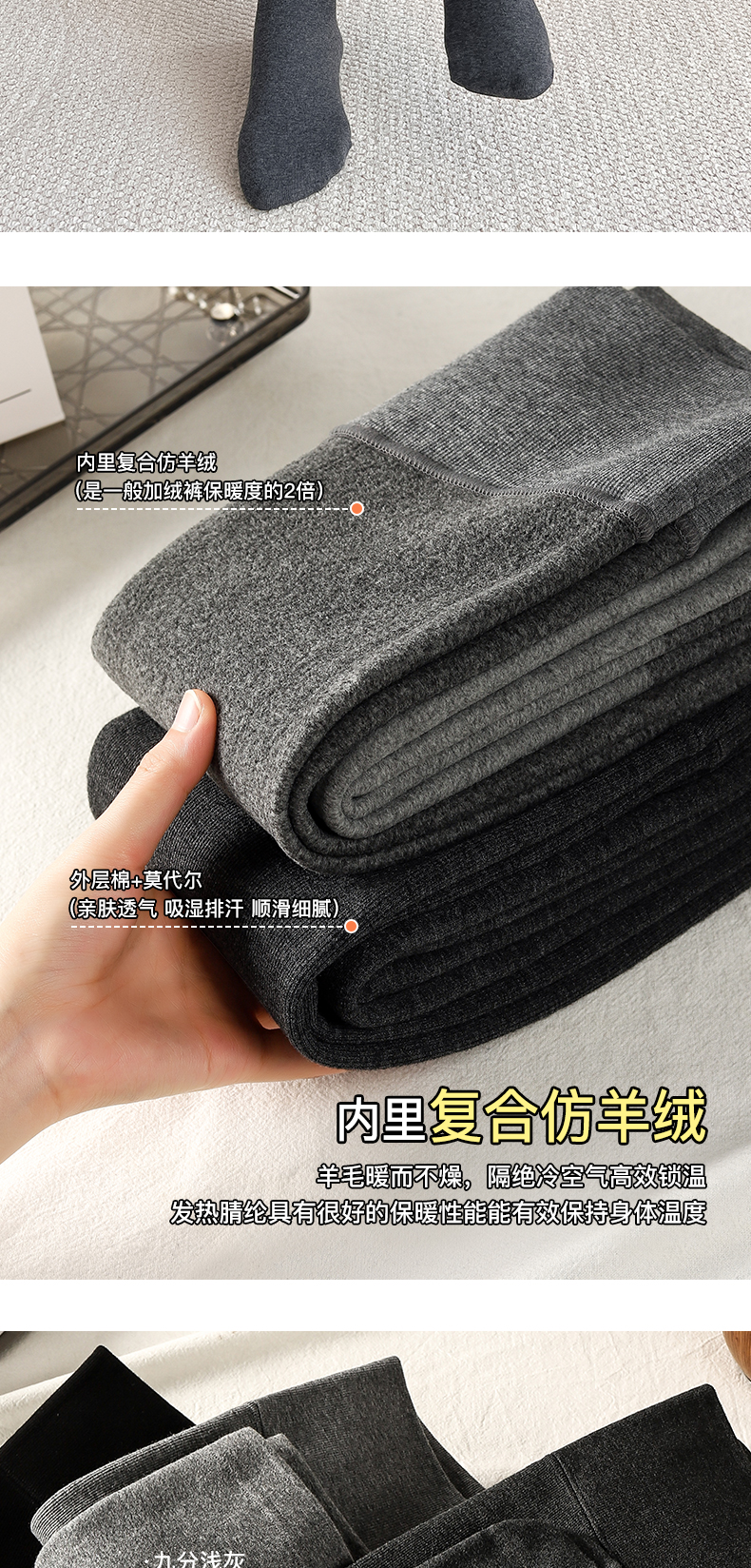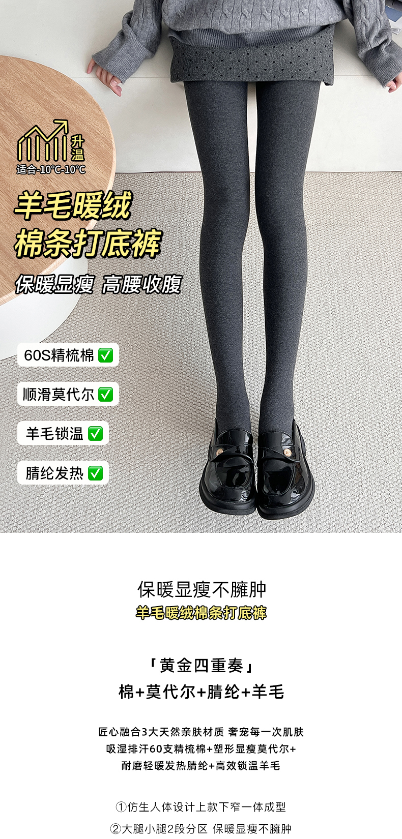 “黄金四重奏”羊毛暖绒棉条打底裤 棉+莫代尔+腈纶+羊毛 暖而不燥 高效锁温 内里复合仿羊绒 微压收腹 四面高弹力360度自由伸展