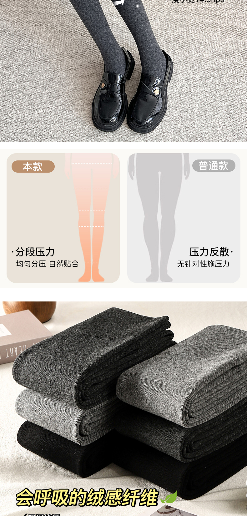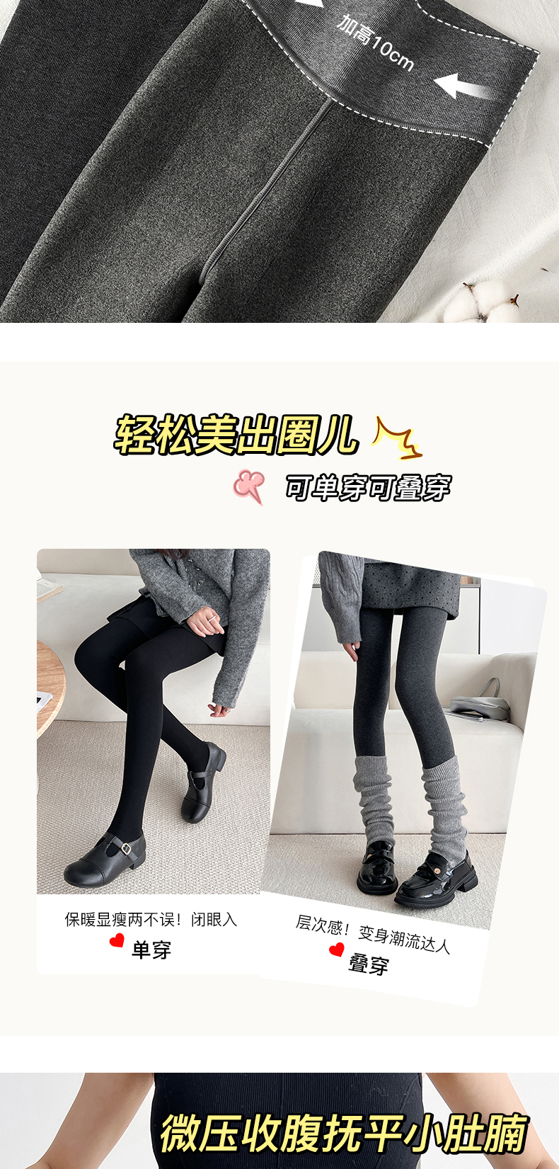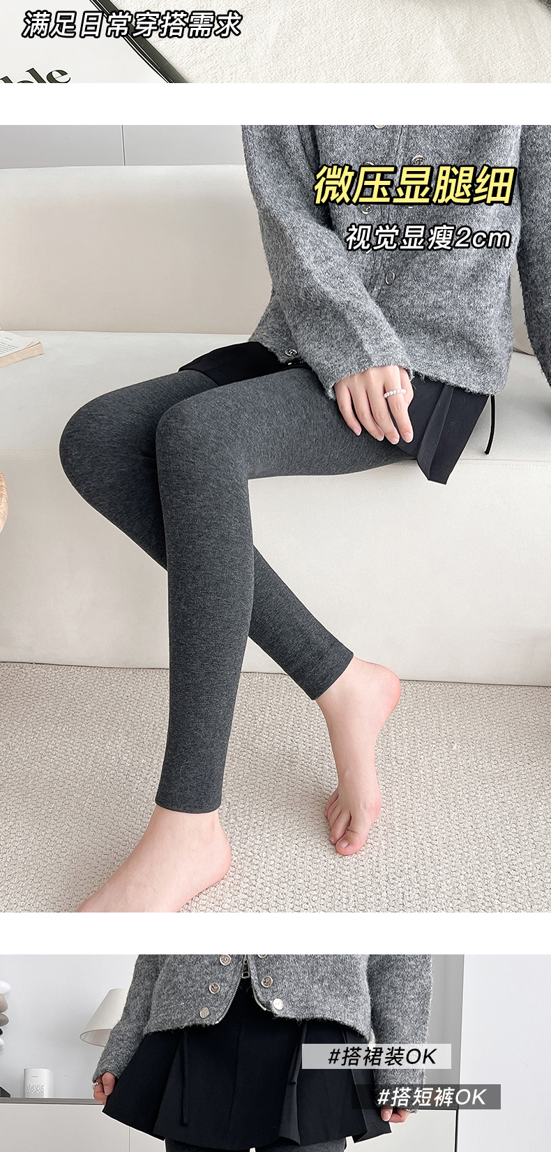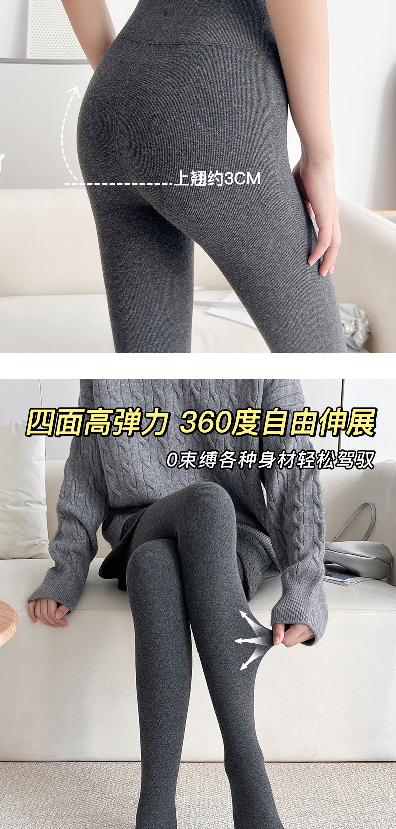 “黄金四重奏”羊毛暖绒棉条打底裤 棉+莫代尔+腈纶+羊毛 暖而不燥 高效锁温 内里复合仿羊绒 微压收腹 四面高弹力360度自由伸展