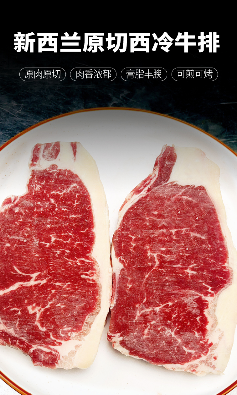 【3-5片厚切 1.2斤-2斤 送黄油】新西兰原切西冷牛排600克-1000克 原肉原切 膏脂肥美 可煎可烤