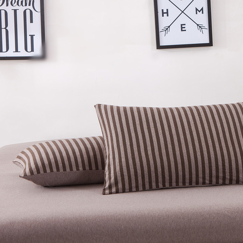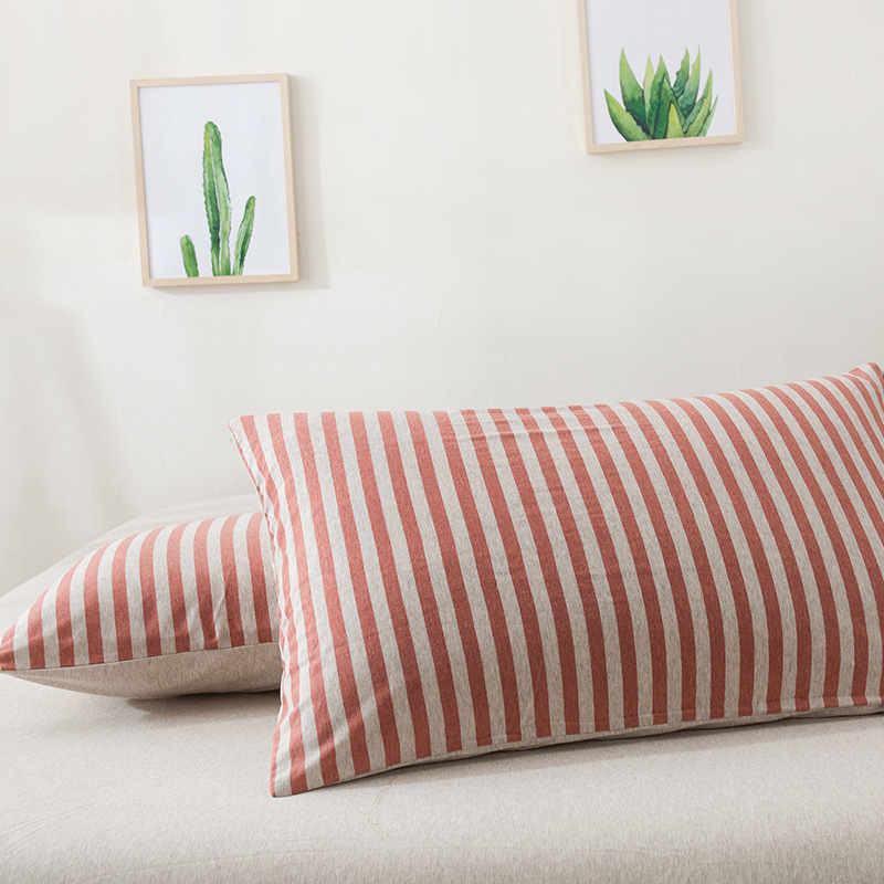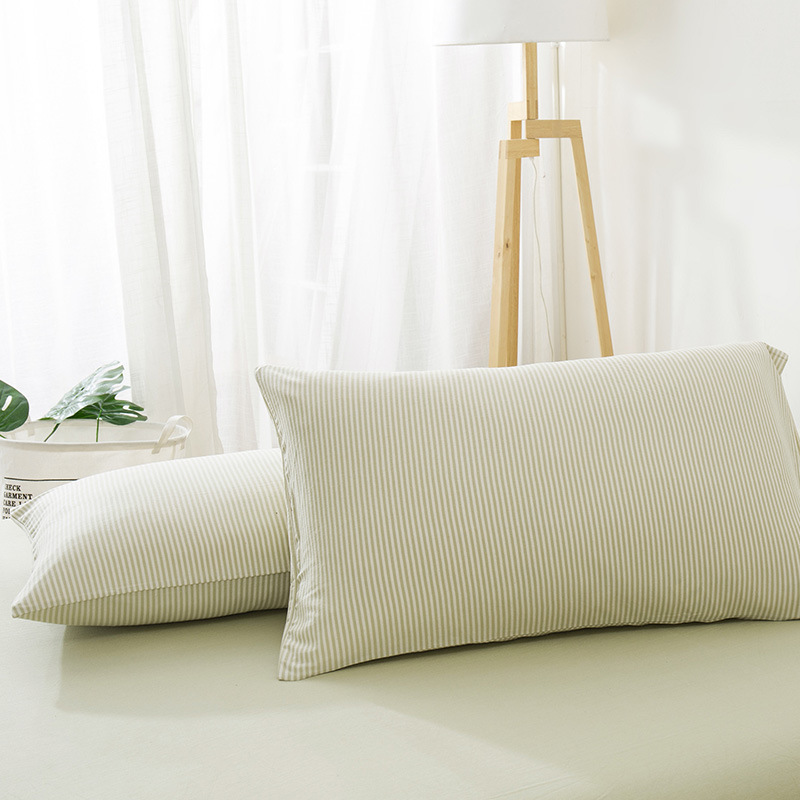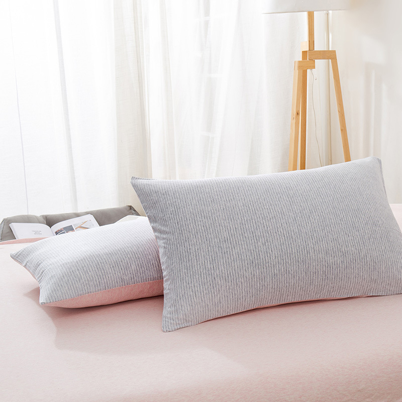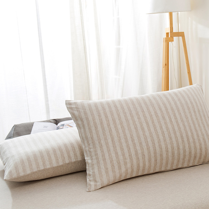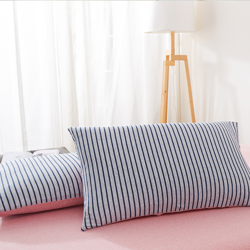 【针织棉枕套】日式无印全棉针织棉枕头套良品简约条纹纯棉单人天竺棉枕套一对