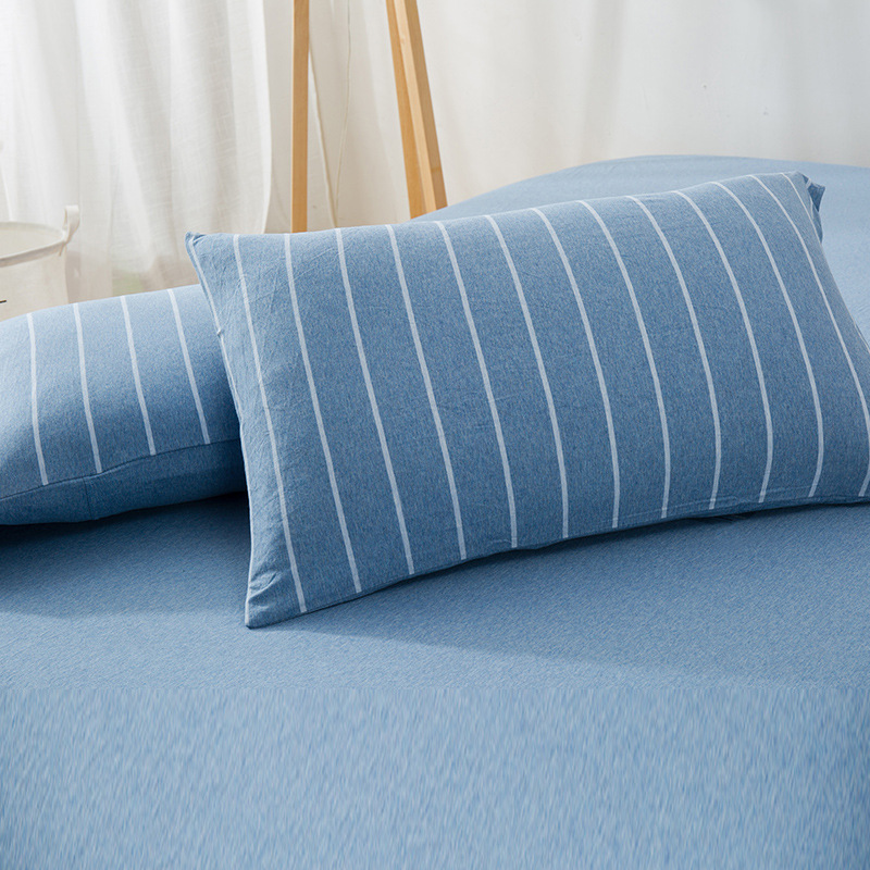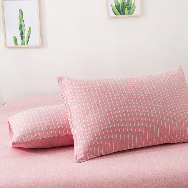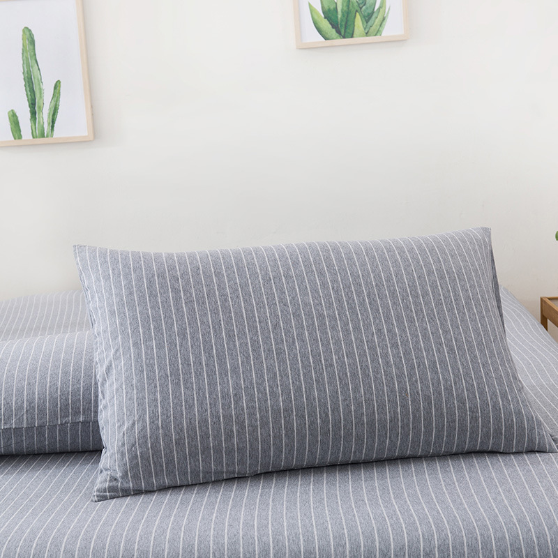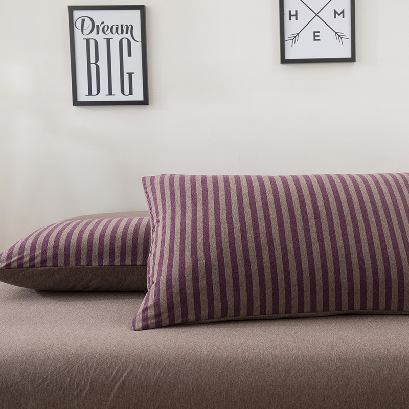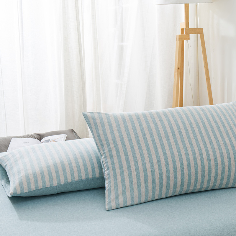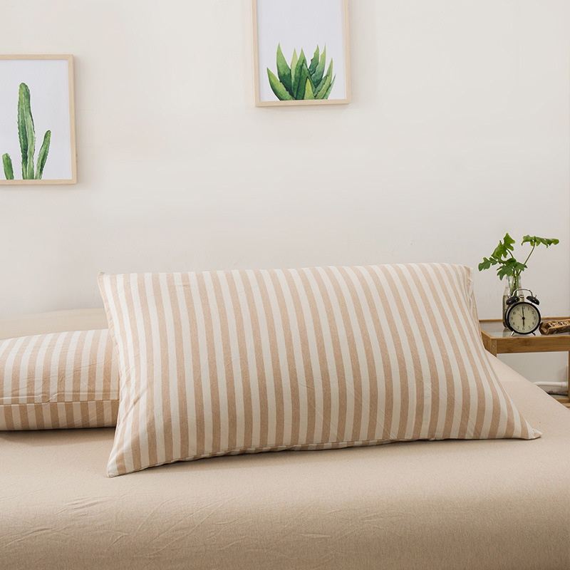 【针织棉枕套】日式无印全棉针织棉枕头套良品简约条纹纯棉单人天竺棉枕套一对