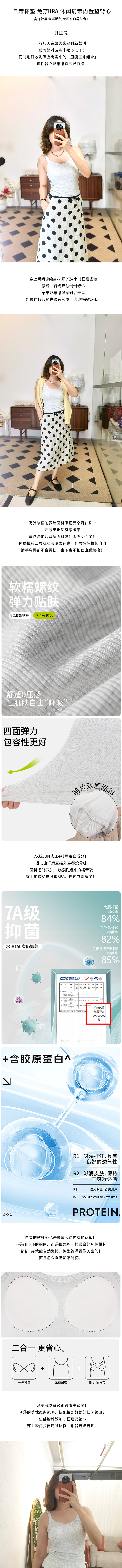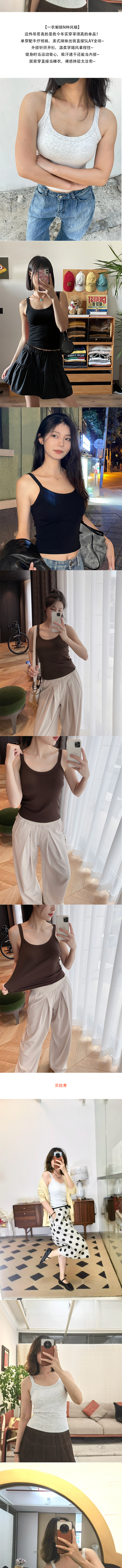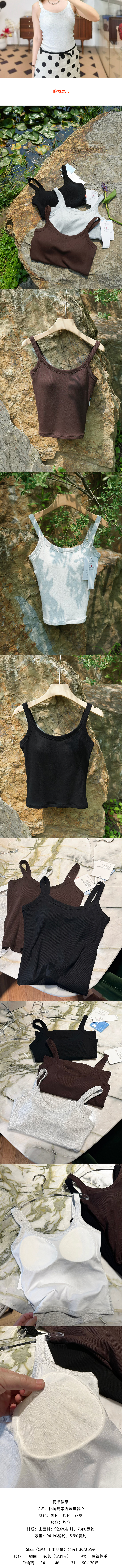 【贝拉推荐 自留款!】自带杯垫 免穿BRA 休闲肩带内置垫背心 高弹软糯 舒适透气 胶原蛋白养肤背心