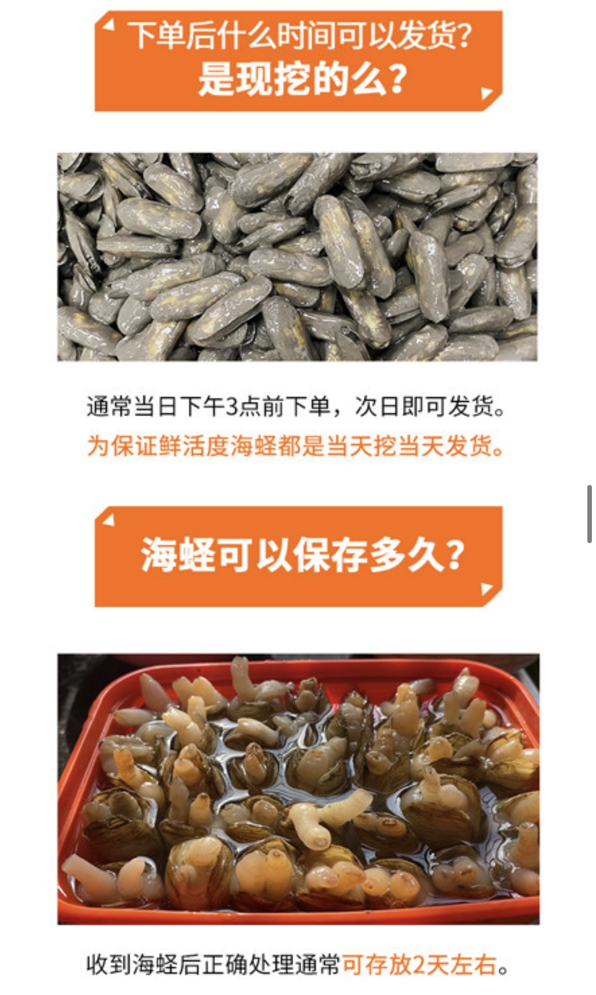 蛏子是活的,直接带着泥挖出来盒子装好寄来,看似费事,其实清洗一下,加碘盐,泡2-3小时就可以使用。炒个葱姜蛏子,配一杯小啤酒,在家里分享给家人,舒服干净,千金不换。