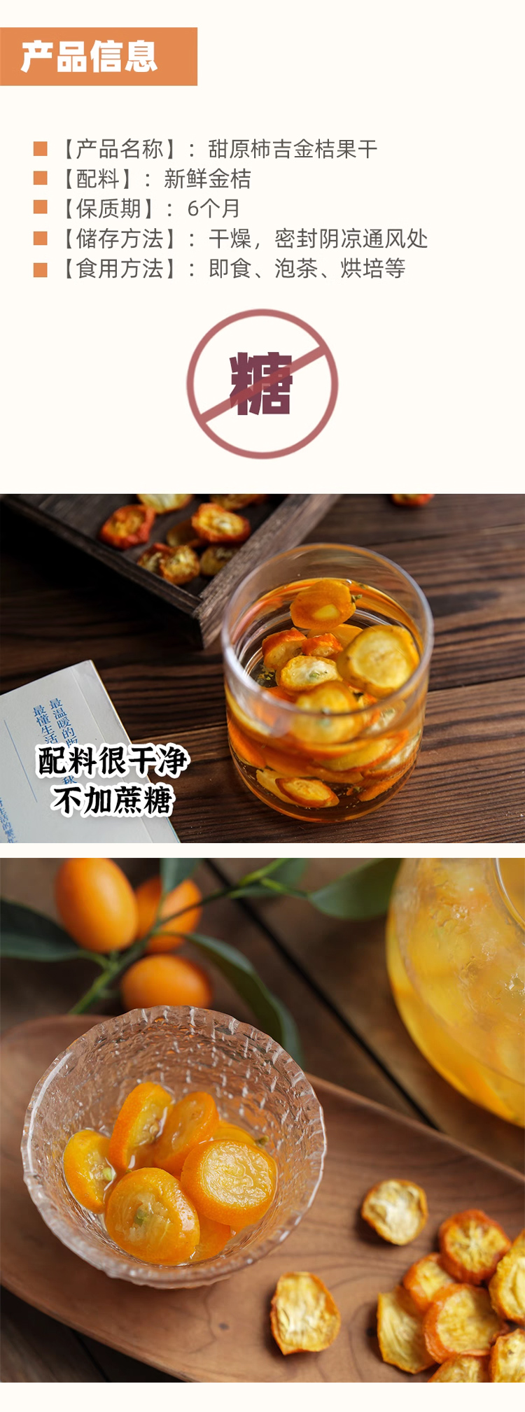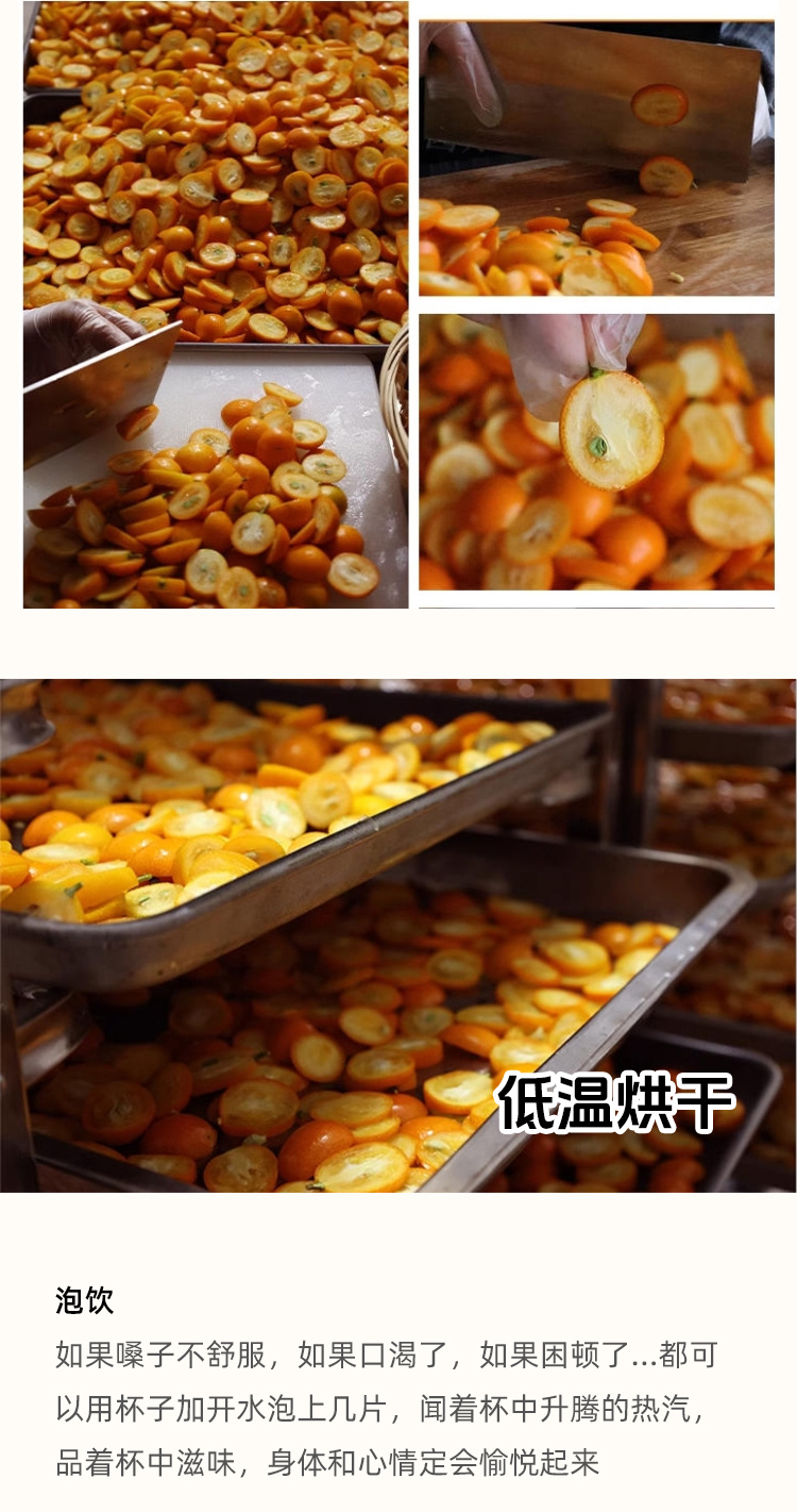 甜原柿吉金桔果干,“一个金桔十副药” 嗓子清爽四季润,非市面通货,树上熟新鲜采摘,非烂果坏果,片片手工原切,低温烘烤,鲜摘鲜烘,连喝一周喉咙舒服,清晰口气,远离口腔尴尬,随意搭配,花果茶里的万金油~