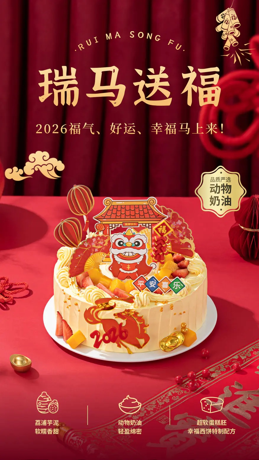 【瑞马送福】醒狮闹春,瑞马送福!2026福气、好运、幸福马上来!祝您马年红红火火,万事顺意,马到功成,所愿皆成真:(今日特惠) | 幸福西饼
