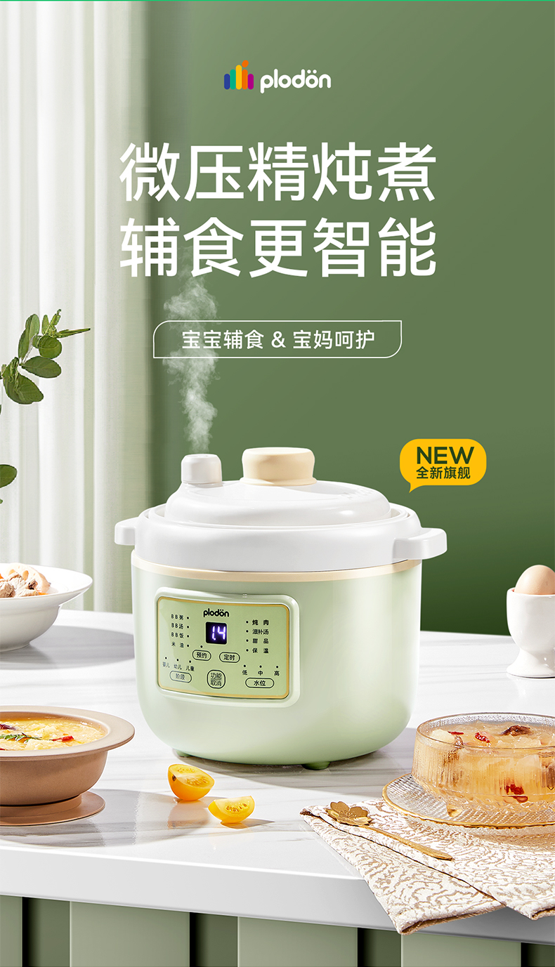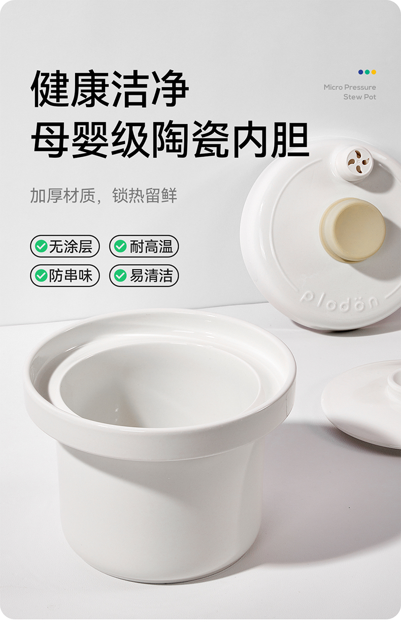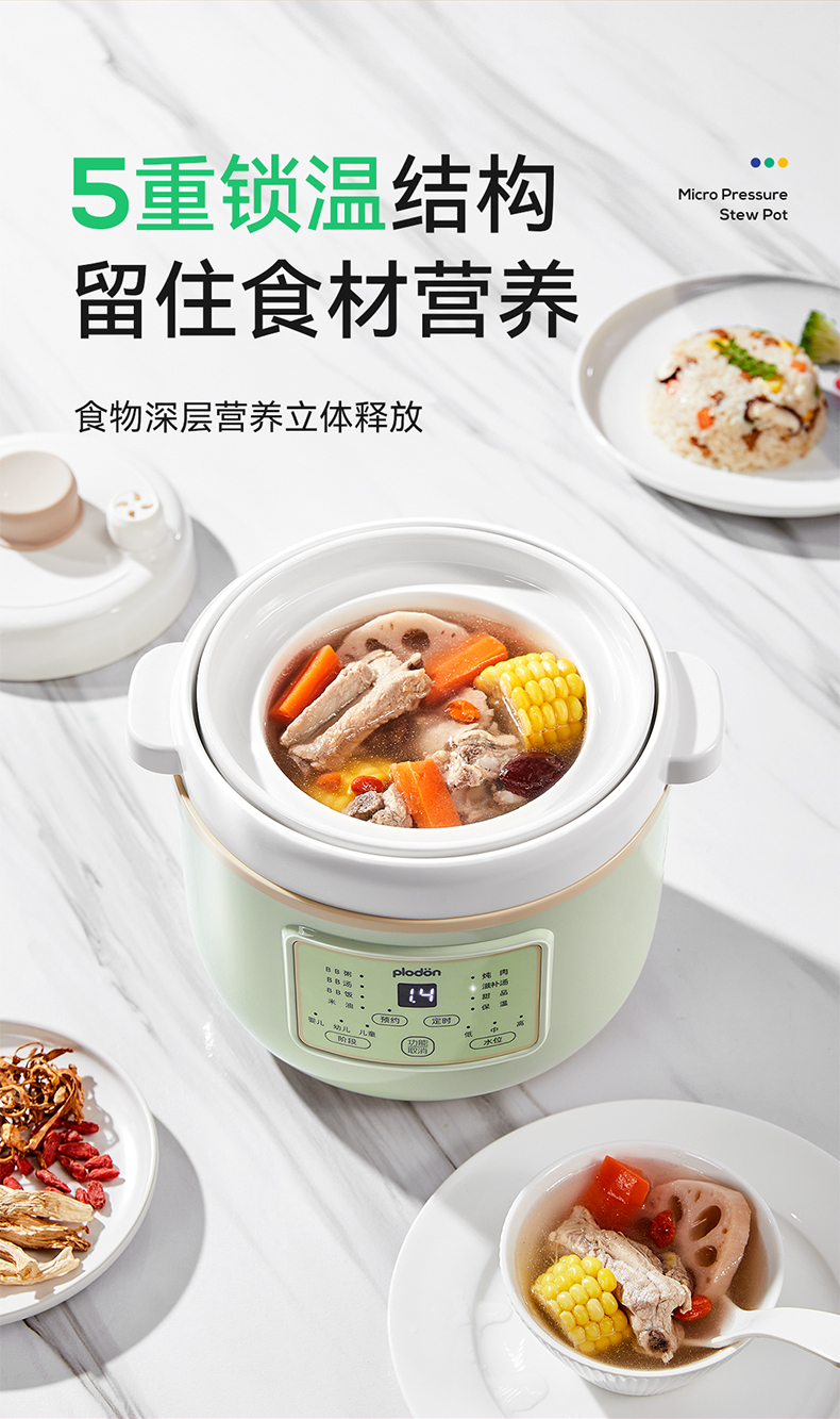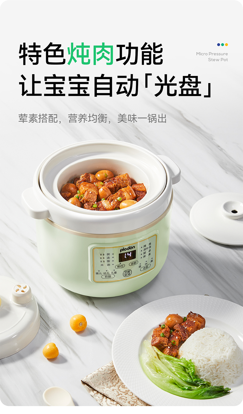 浦利顿婴幼儿五阶段微压电炖锅陶瓷宝宝专用电饭煲BB煮辅食锅PLD-DGD15-15A
