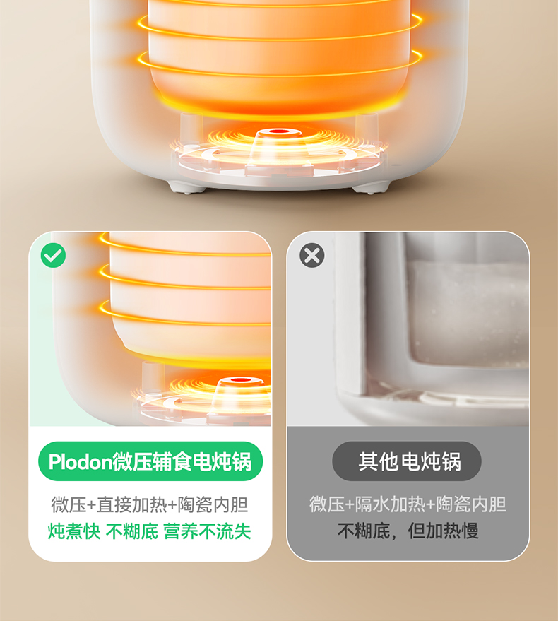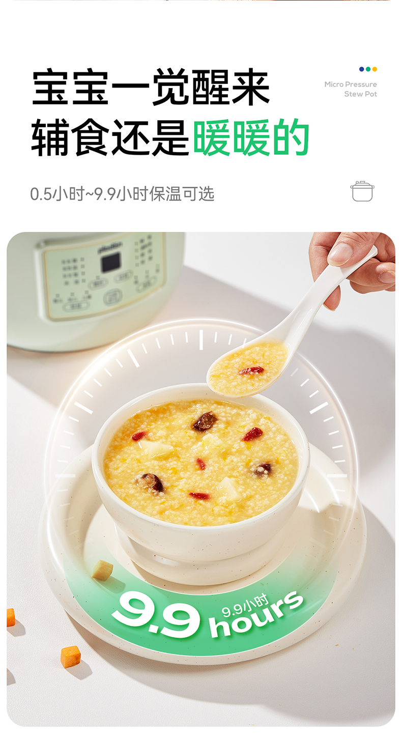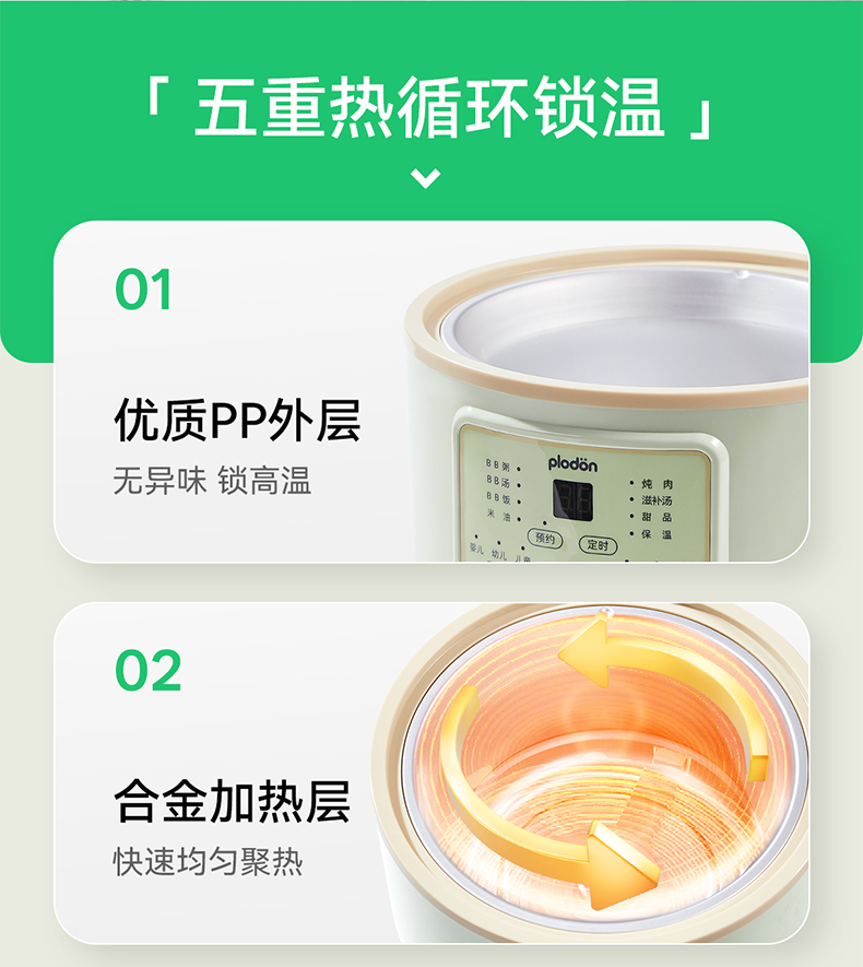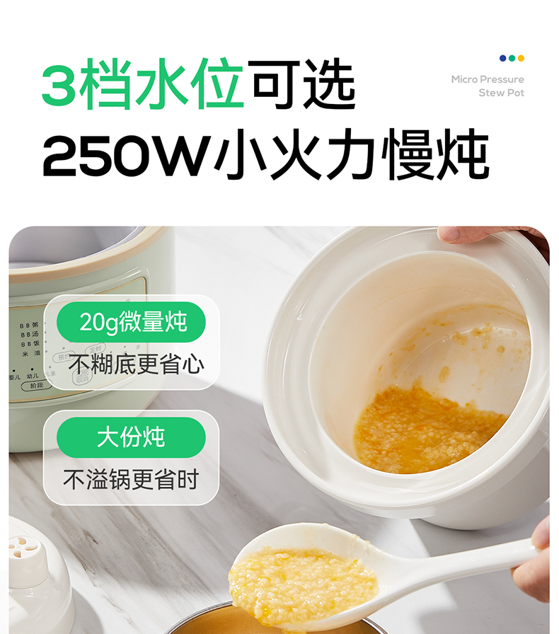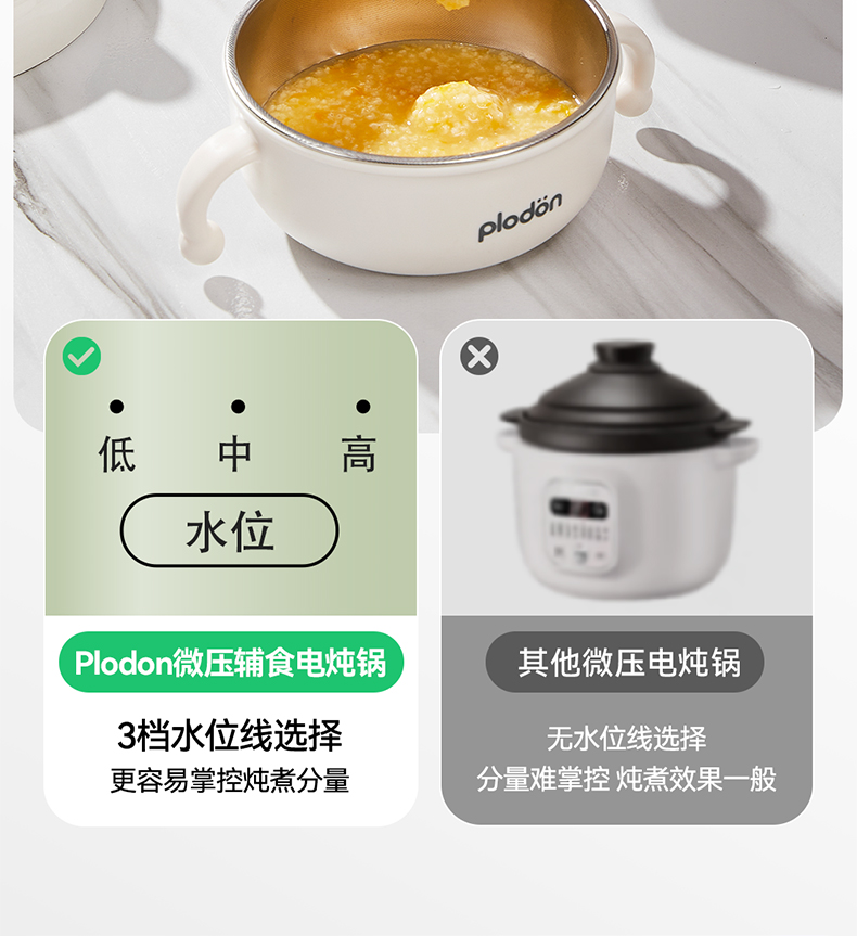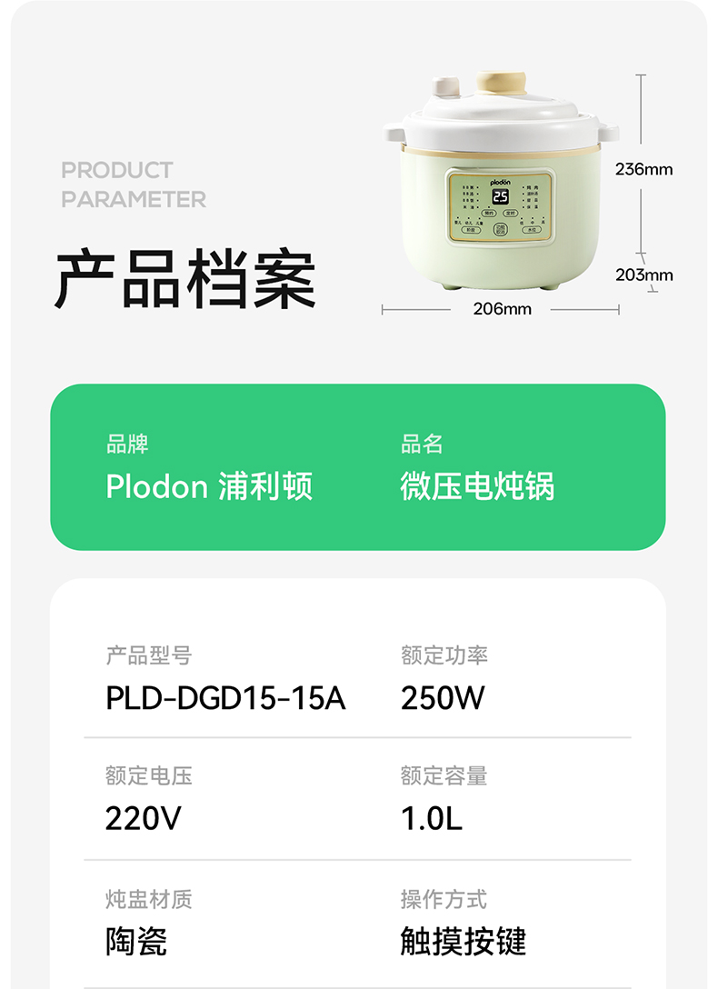 浦利顿婴幼儿五阶段微压电炖锅陶瓷宝宝专用电饭煲BB煮辅食锅PLD-DGD15-15A