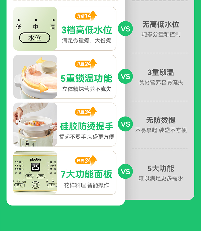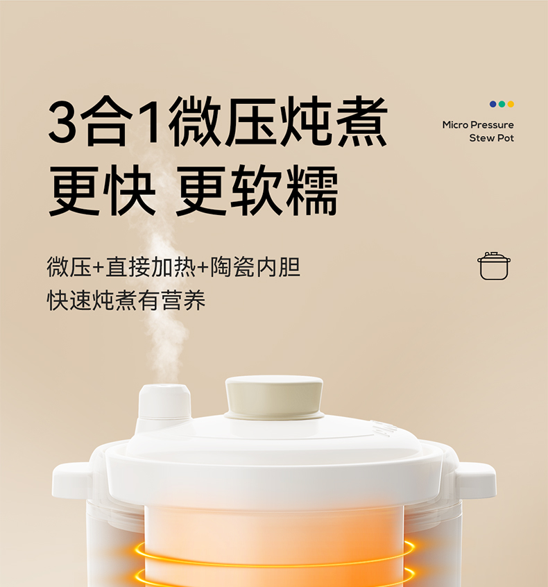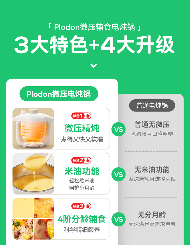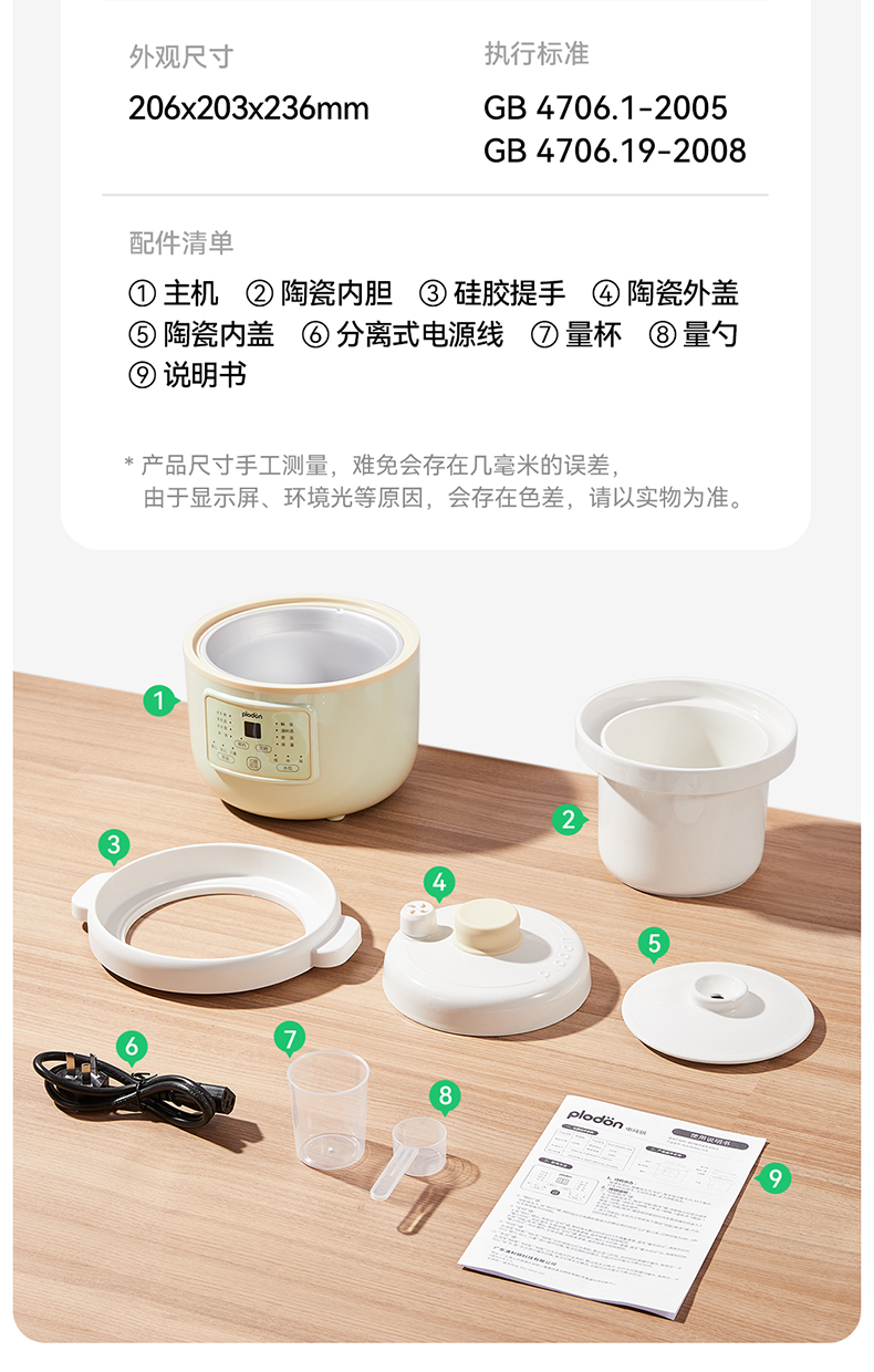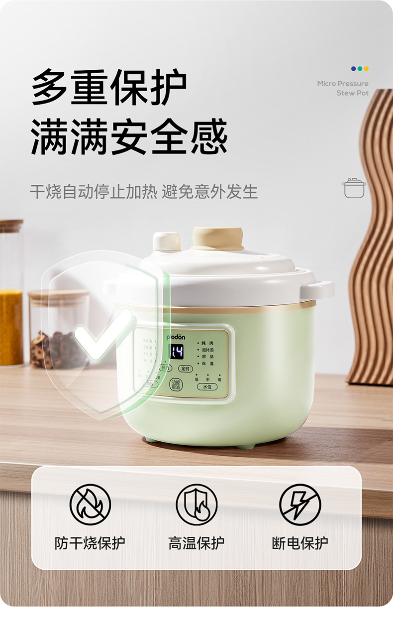 浦利顿婴幼儿五阶段微压电炖锅陶瓷宝宝专用电饭煲BB煮辅食锅PLD-DGD15-15A