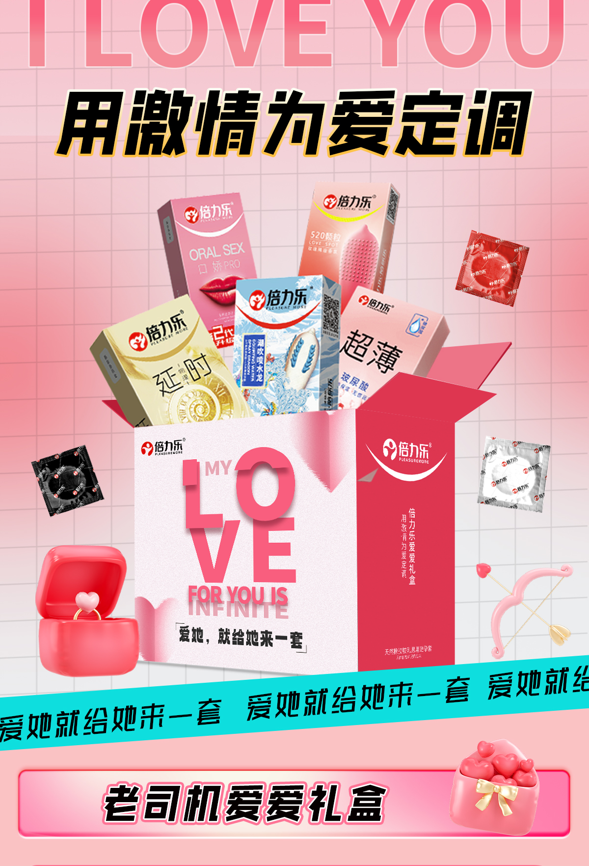 倍力乐礼盒套装情趣避孕套礼盒套装夫妻情侣用品男女用避孕套口娇套物理延时避孕套喷水龙套套水润超薄套润滑