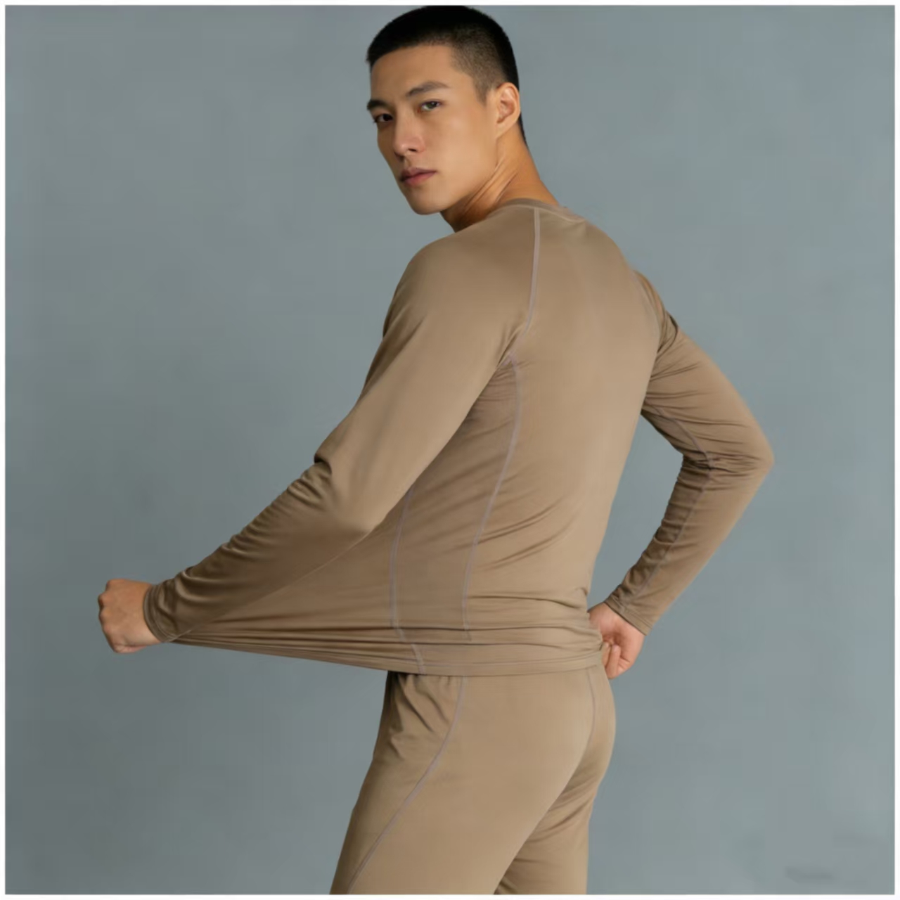 【单向导水抗静电款秋衣裤套装】男款高弹抗静电速干卡其色内衣套装03h