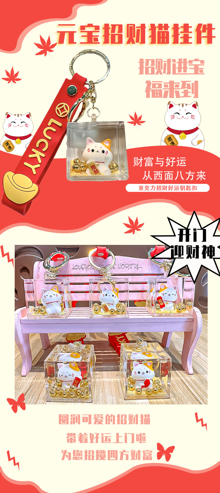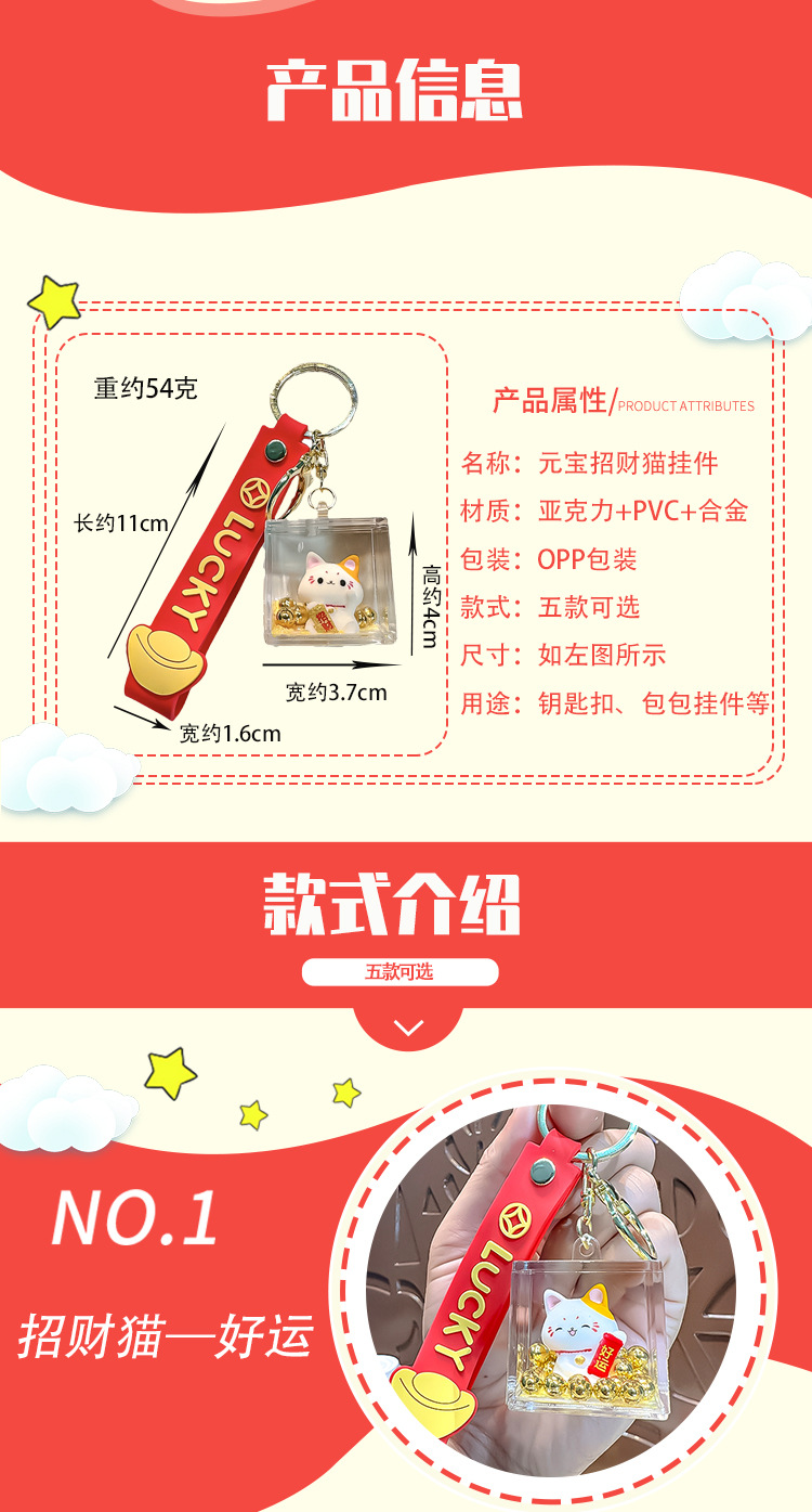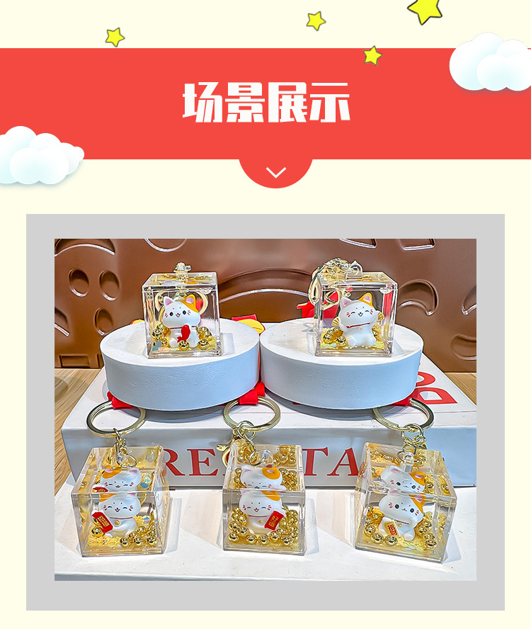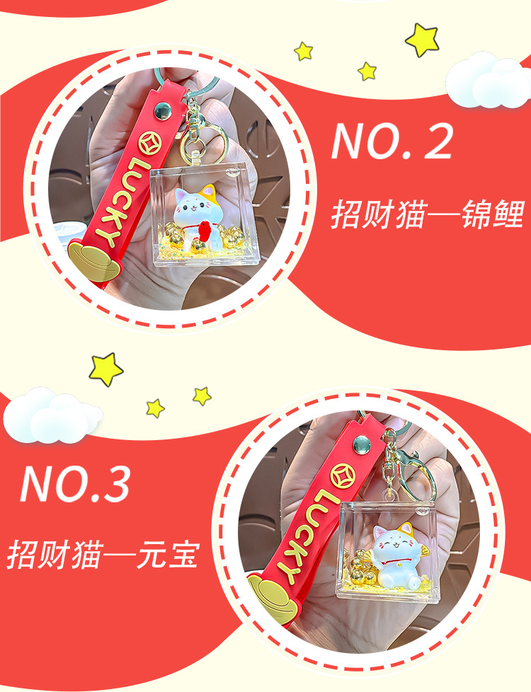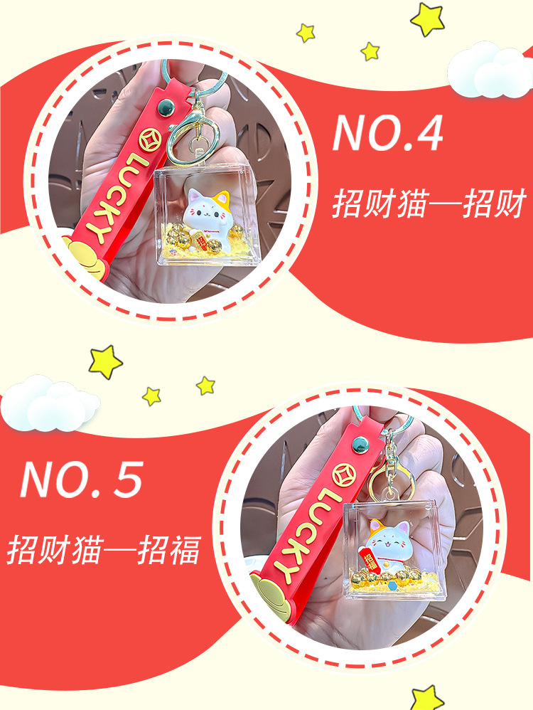 【新年纳福❗️元宝流沙招财猫】圆润可爱,,福来到,好运连连!马年漂流瓶入油钥匙扣创意可爱招福挂件精致包包车挂饰