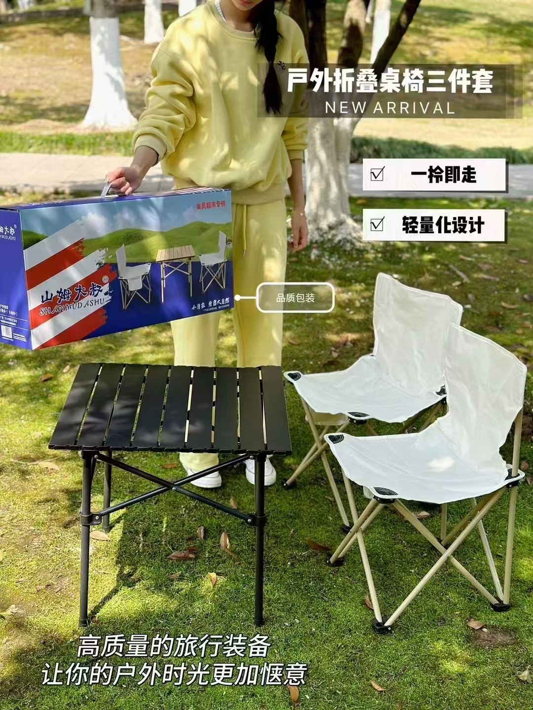 山姆大叔户外折叠桌椅三件套