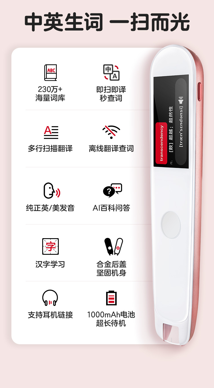 网易有道词典笔2.0加强版16G 翻译笔智能翻译机英语学习翻译考研神器电子词典扫描笔点读笔中英文互译智能离线翻译