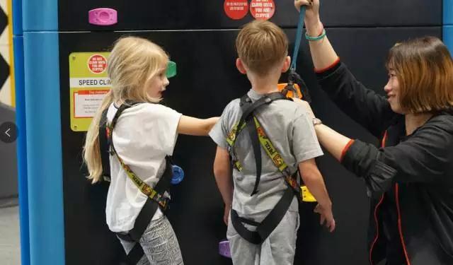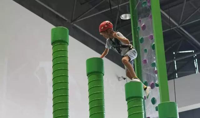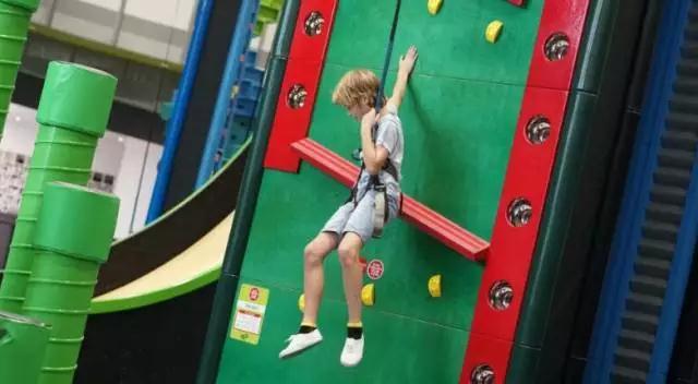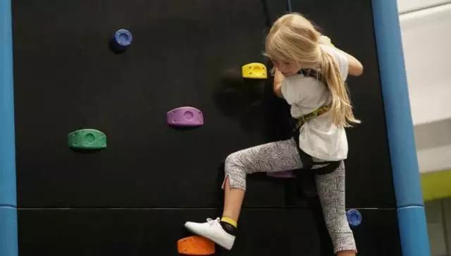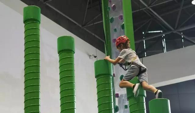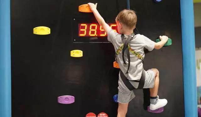 扣扣攀趣味攀岩区在馆内中心区域